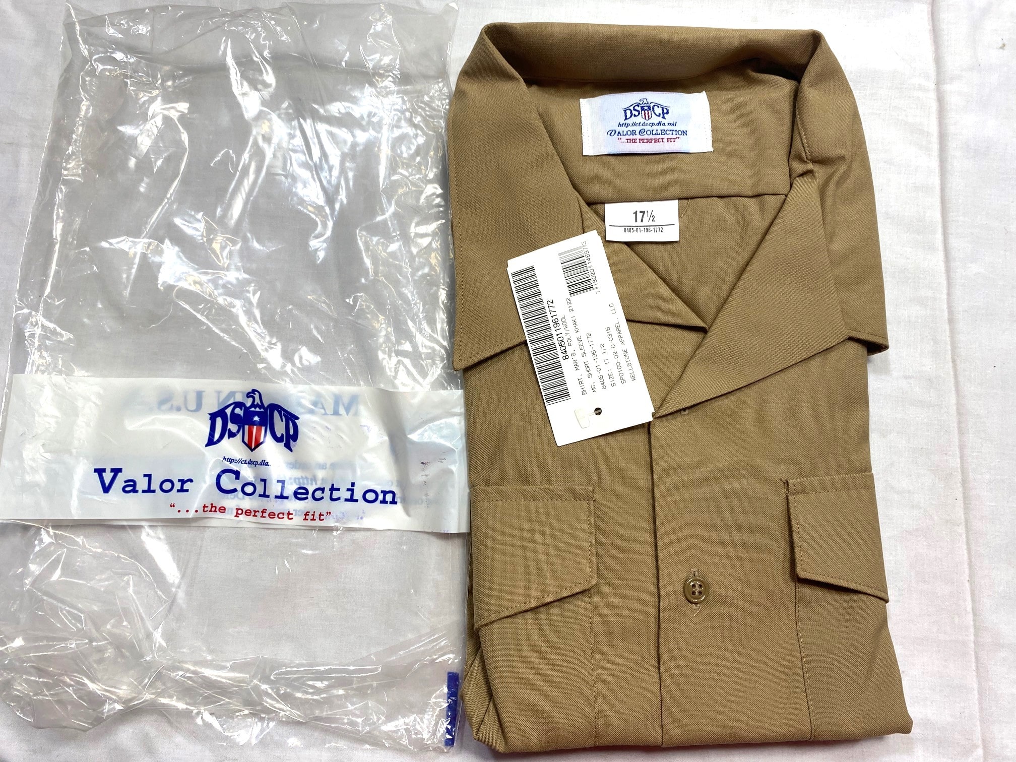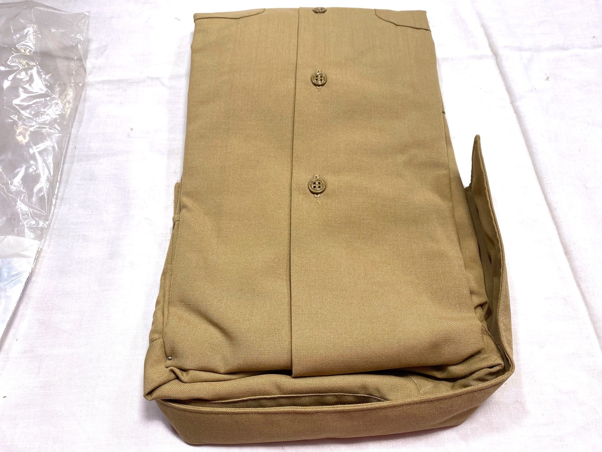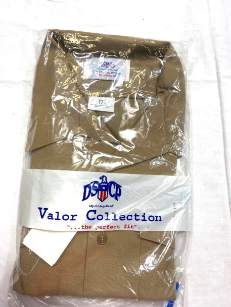 US Navy khaki uniform shirt. Cotton / poly khaki material new old stock condition. In original government packaging. Valor collection.