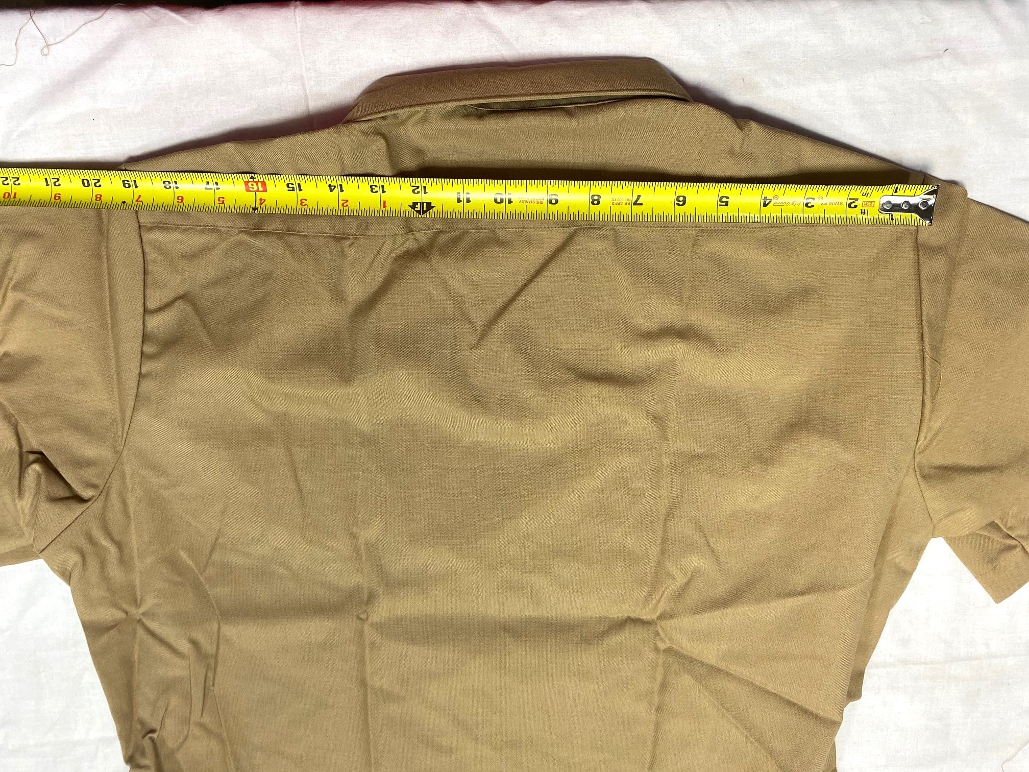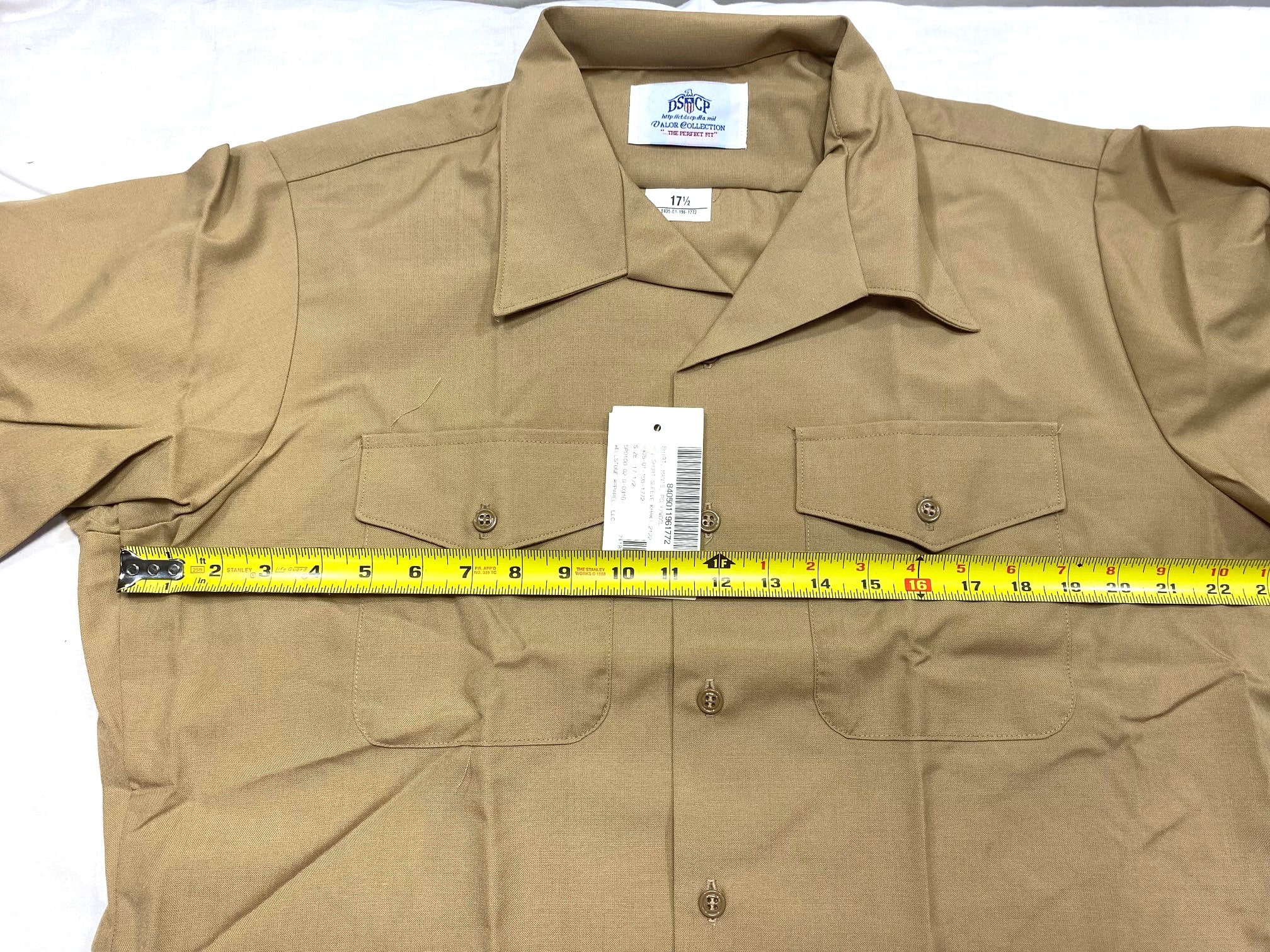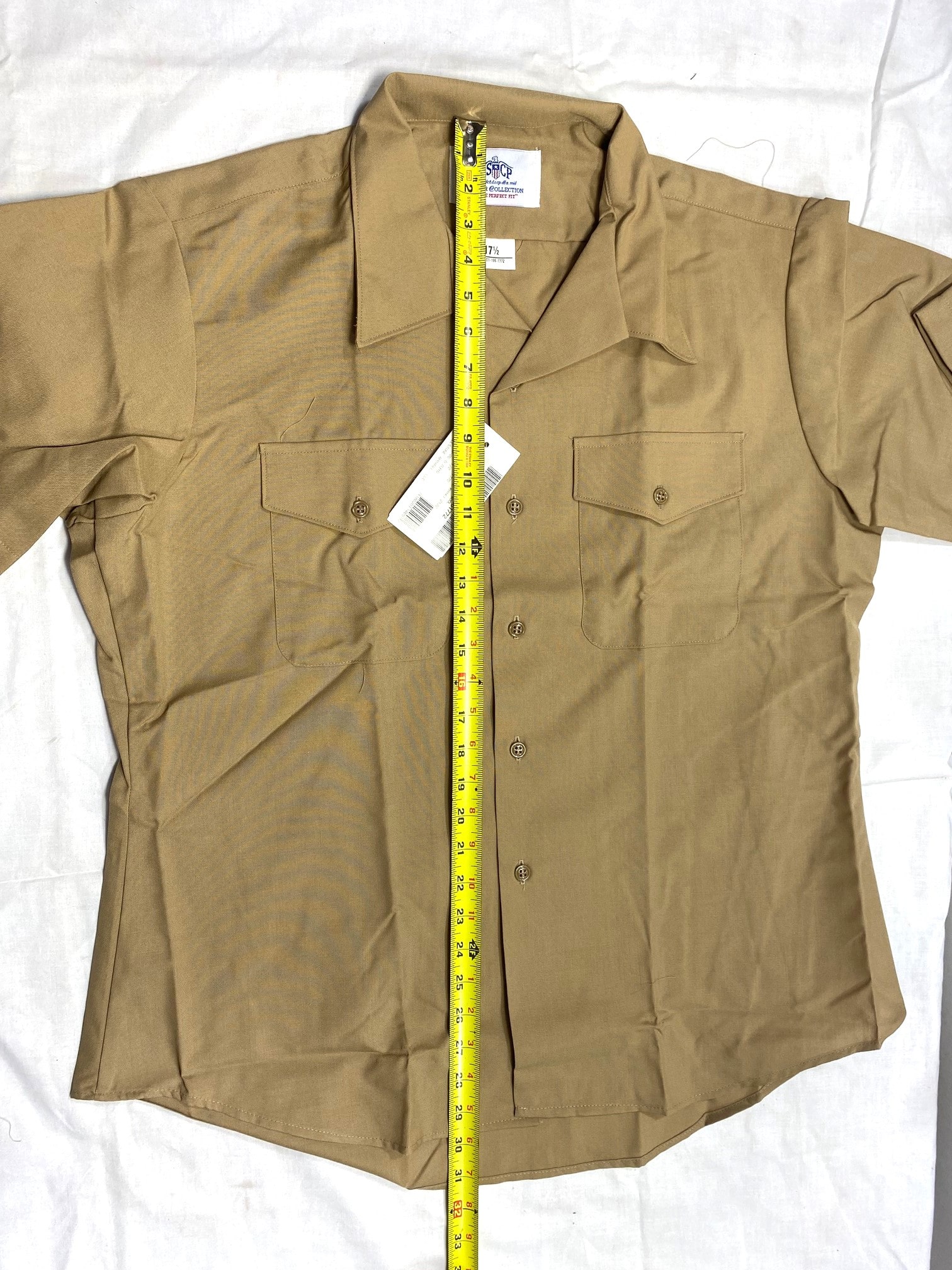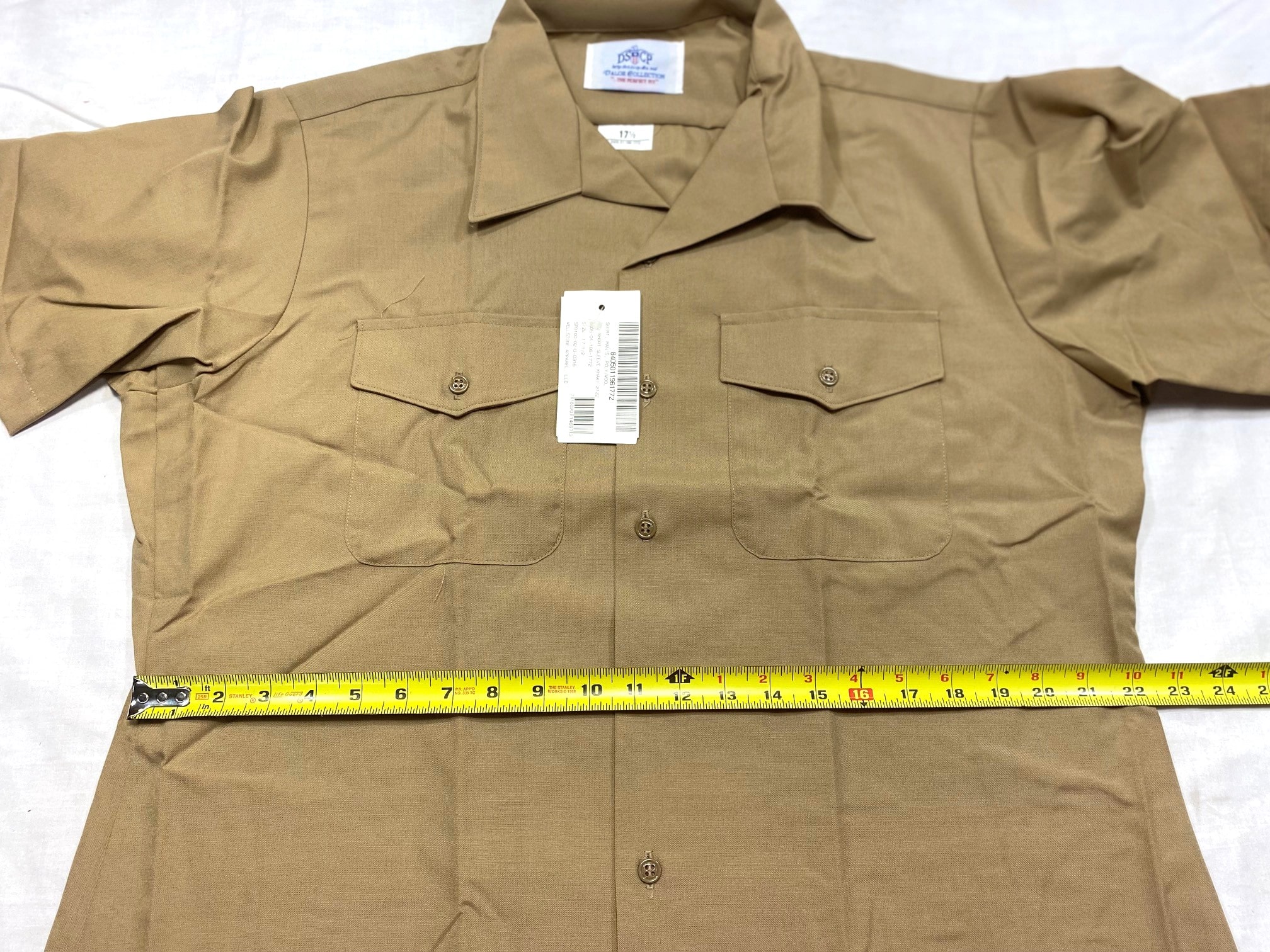 Shirt, man’s, cotton/poly, khaki shade tan 2122, short sleeve size 17 1/2 new old stock. DSCP