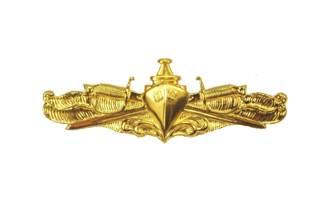 USN surface warfare badge. 3″ long and made by Vanguard of gold-plated anodized. Official Navy issue.