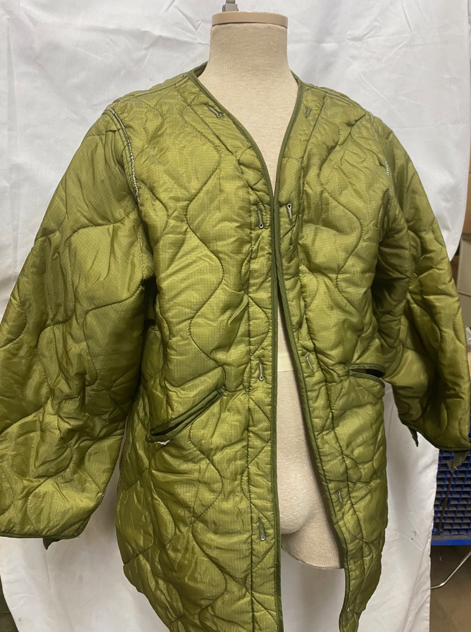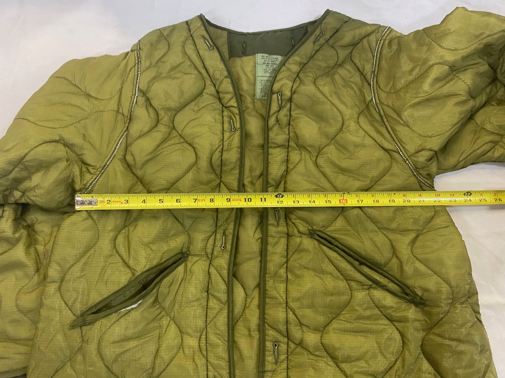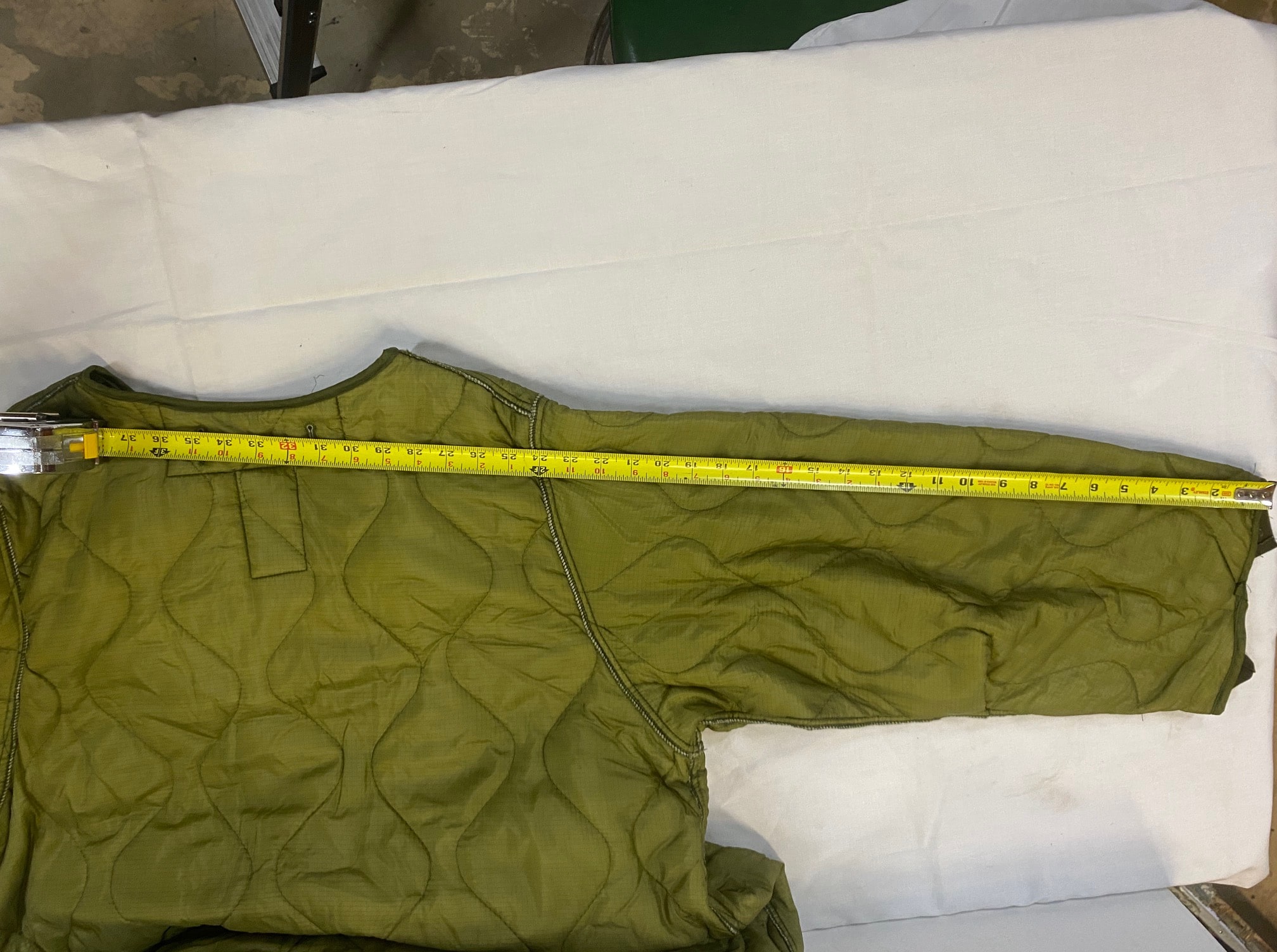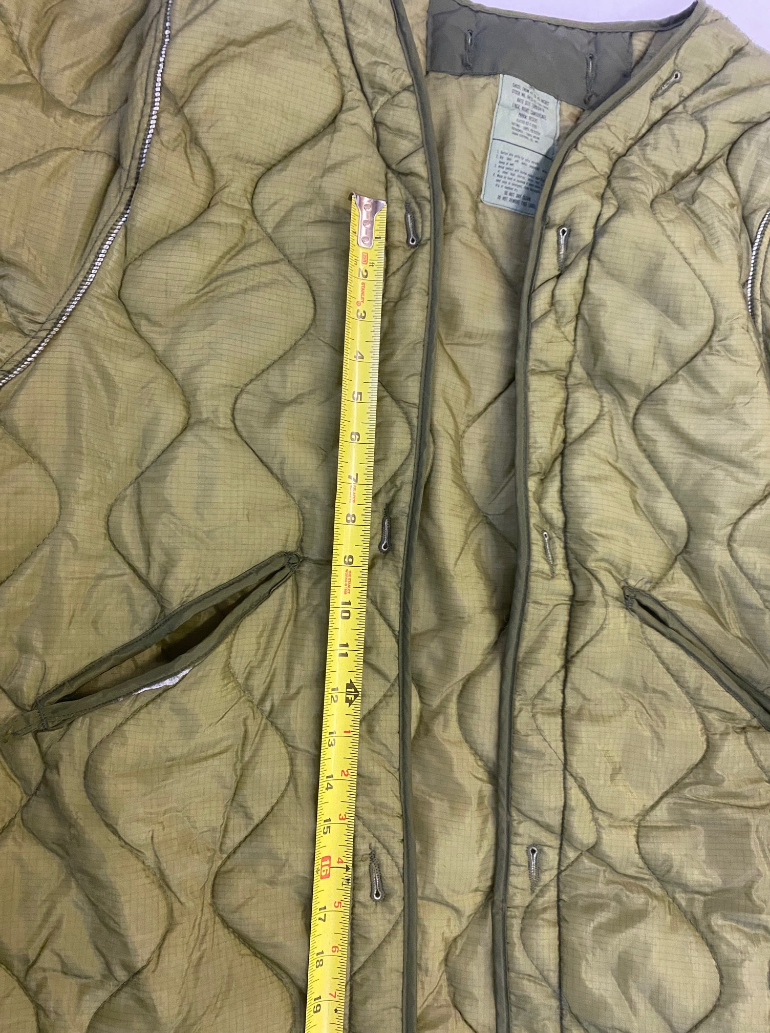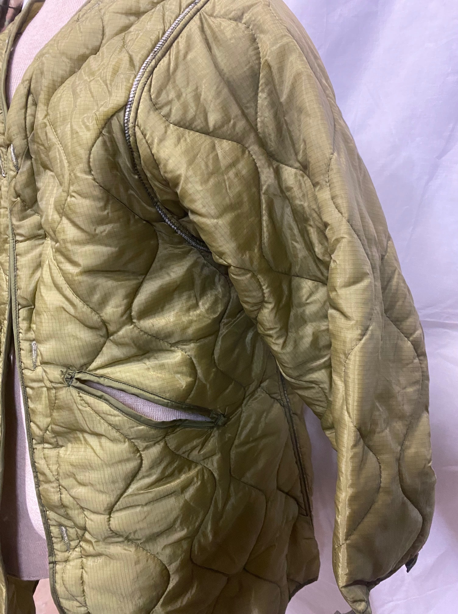 Slightly different from the M65 liners. Side pockets are on these liners, no exterior buttons.. SIZE LARGE ONLY.