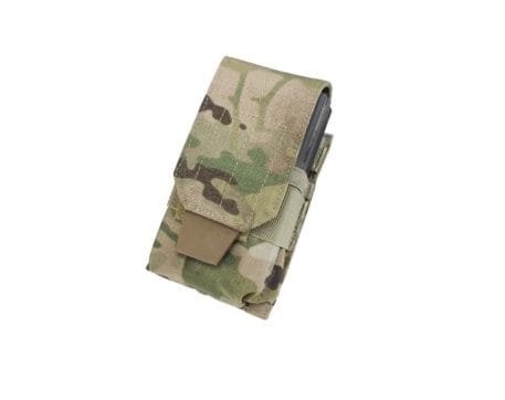 Scorpion OCP camo. Can hold two M14 or similar magazines. Adjustable hook & loop flap. 6″H x 3.5″W x 2.25″D