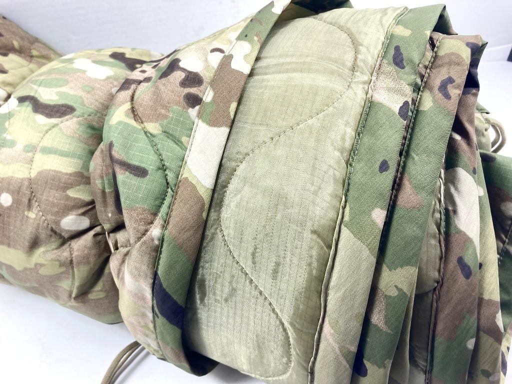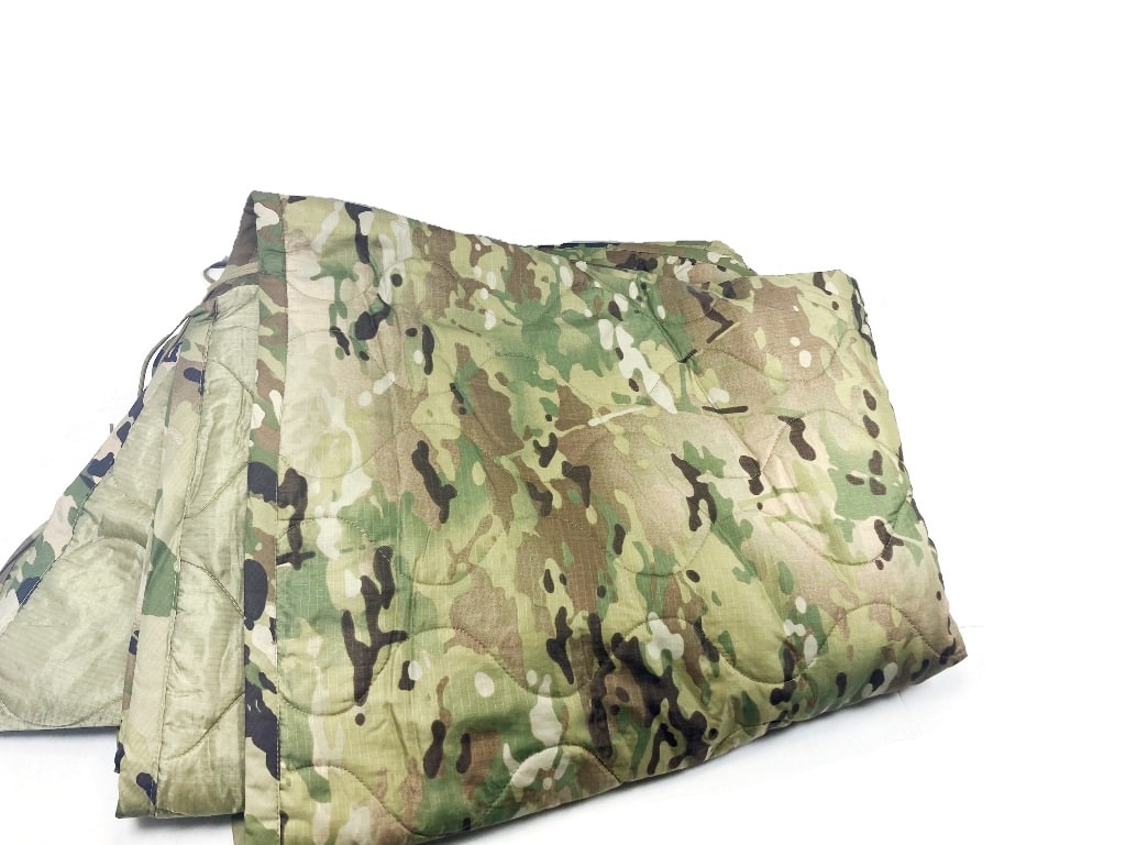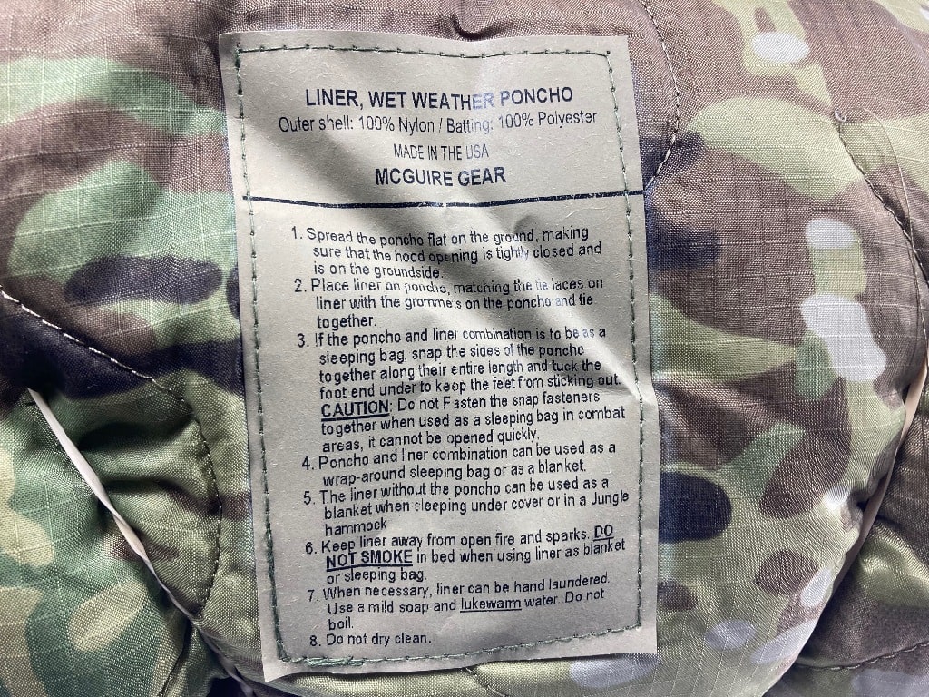 When attached to the G.I. poncho it makes a warm, waterproof sleeping roll. These were proven in Vietnam and are one of our most requested items. New, about 5′ x 7′. with tie straps all around. It does not have a hole in the center. Made to turn the poncho into a sleep system. Makes a great lightweight blanket or sleeping bag. Veterans all agree that this is one of the best items the military ever made