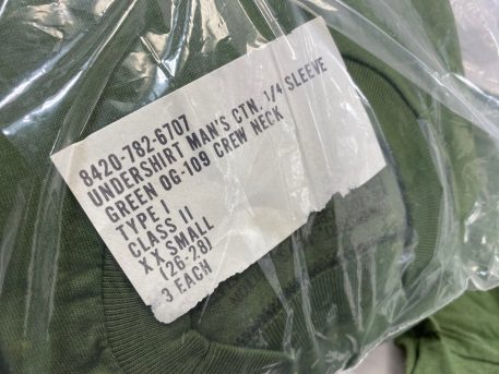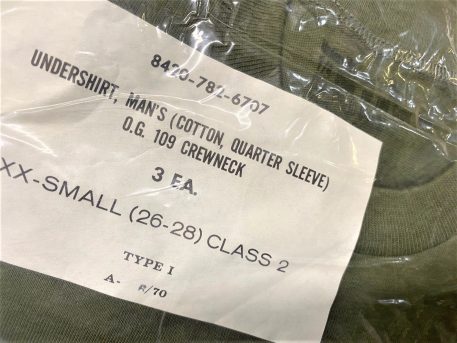 New original issue Olive Drab undershirts for the us military. Sold in 3-pack. Vietnam issue. All dated 1970. Brand new.
