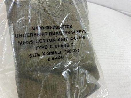 Undershirt quarter sleeve Type 1 Class 2. Men’s cotton knit OG-109 Olive drab. (Darker, browner green- NOT OG-107).