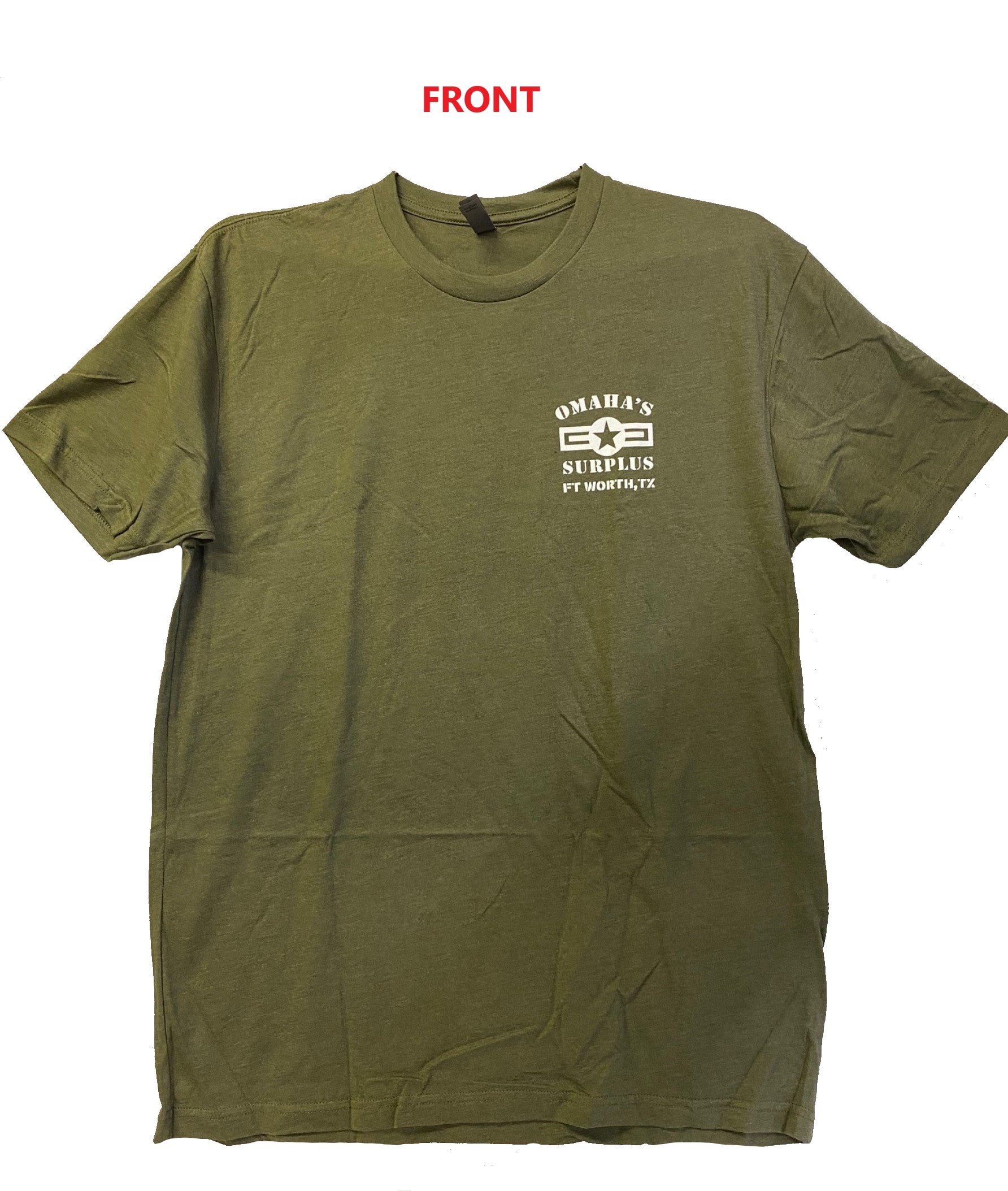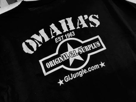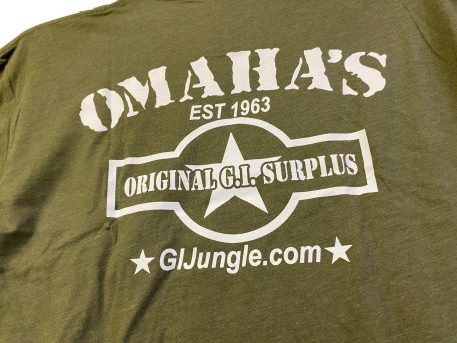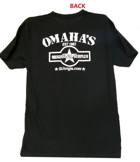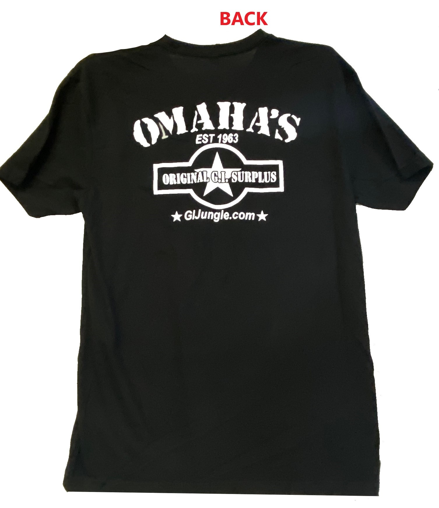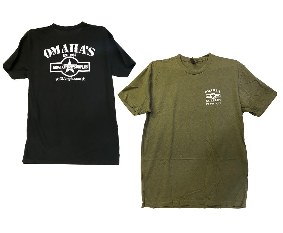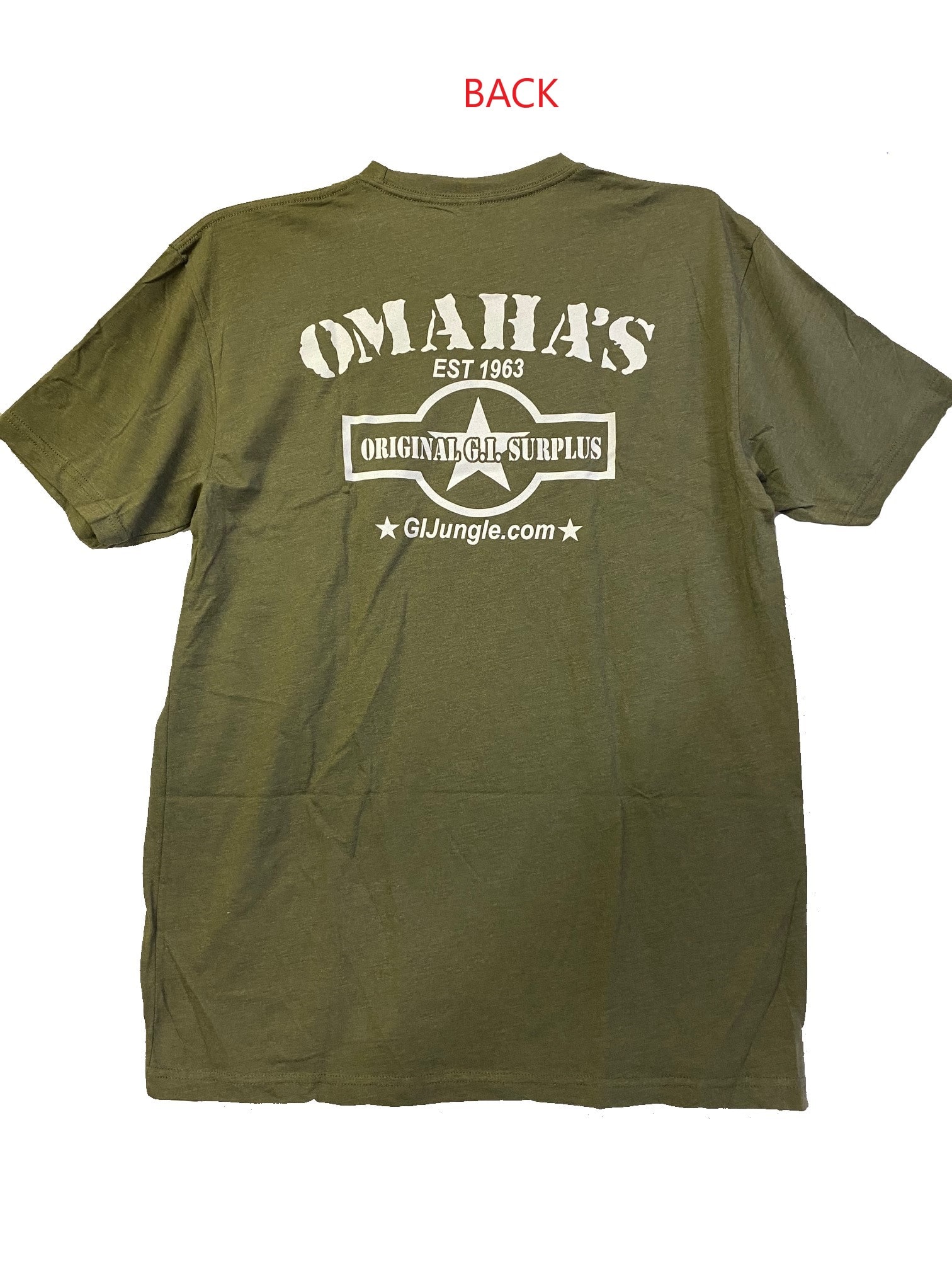 Our very own t-shirt! Classic style with original Omahas logo since 1963. Comes in olive drab or black short sleeve t-shirts.