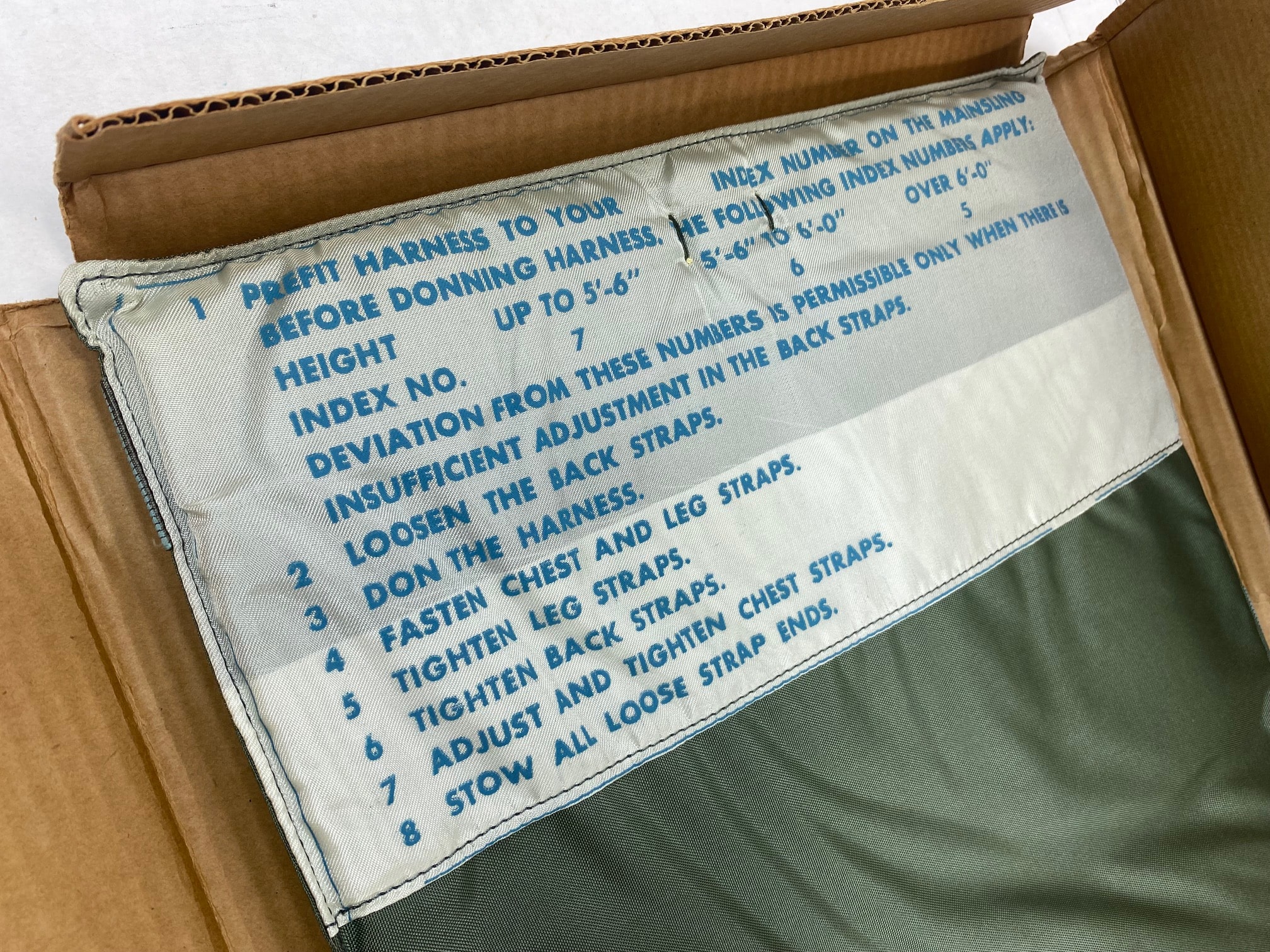 Backpad for a parachute pack. 14″ x 22″. 1967 dated.