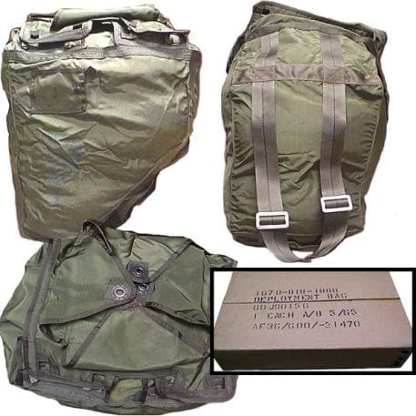 This parachute deployment bag is individually wrapped and sealed in a box. Because it was intended for ripcord opening, this bag does not have any zip, snap, or button closure. Nylon, Approx. 18″ x 13″. P/N 60J90156. New Military Surplus. Dated 1965. New mint condition in original government package.