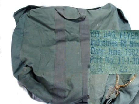 Some call it the “Kit Bag”. Used by pilots/parachutists to carry their chute and related gear after a drop, these are genuine government issue. Heavy cotton canvas is sewn with nylon thread to provide super-strength. The handle straps wrap completely around the bag for added support of heavy loads. Great to carry larger camping or hunting gear. They measure 11” x 22” x 19” tall. Color-sage green.