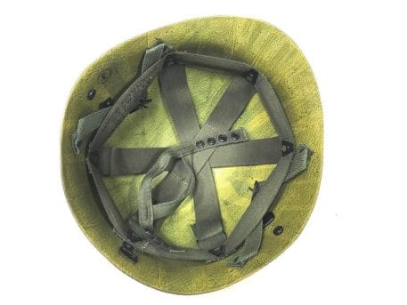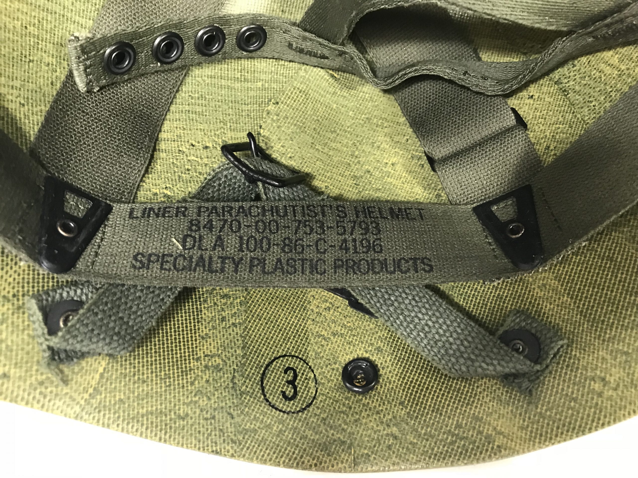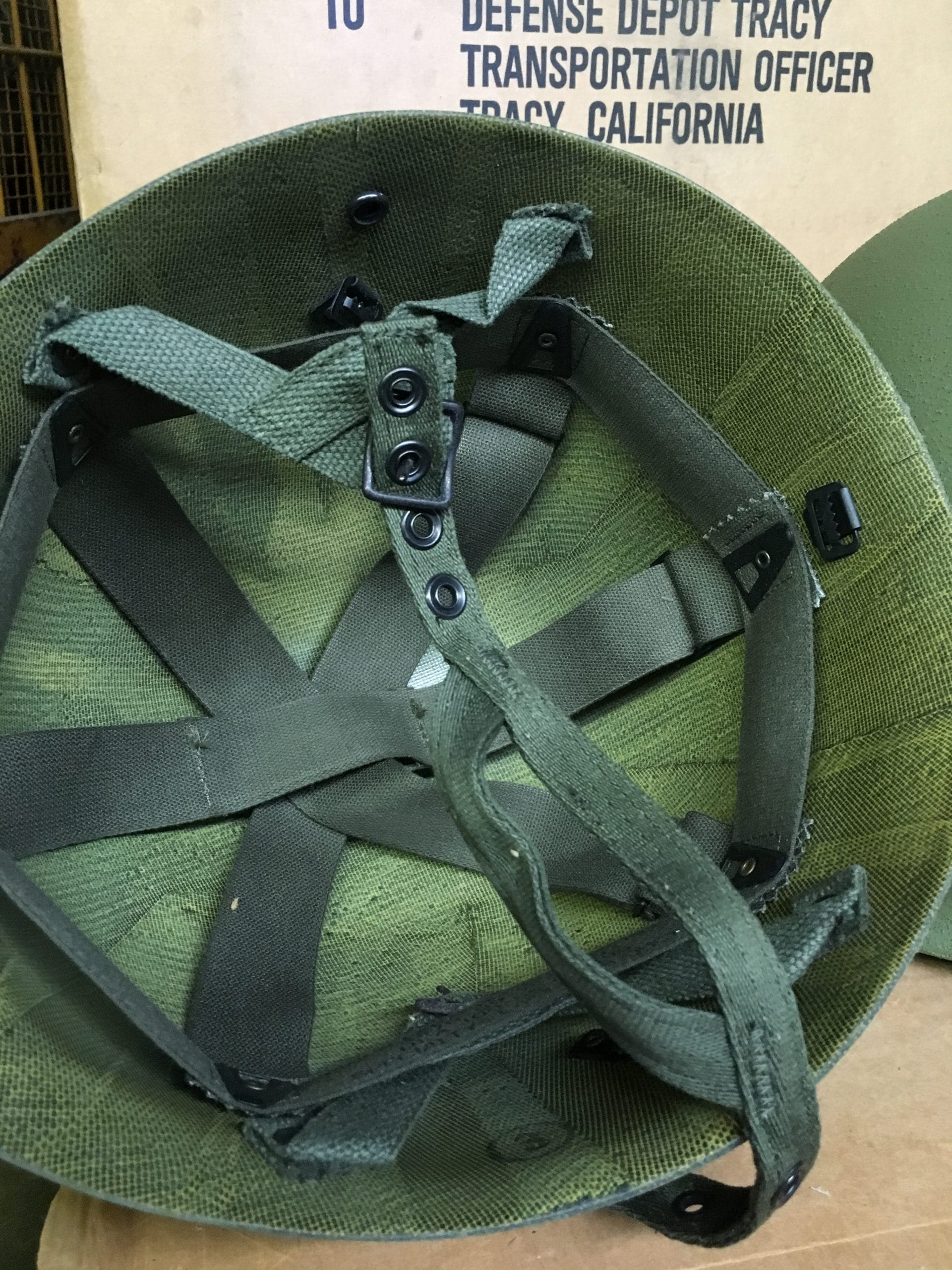 New, mint condition. 1980’s dated. Comes with the cotton chinstrap but does not include a leather sweatband. Color shades of this liner very, but true Olive drab.