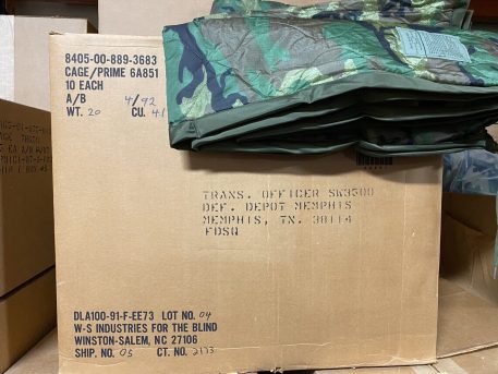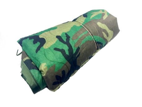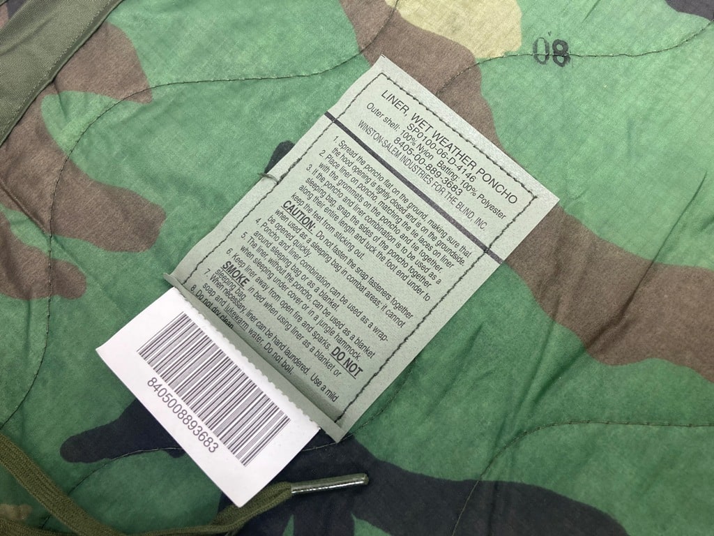 When attached to the G.I. poncho it makes a warm, waterproof sleeping roll. These were proven in Vietnam and are one of our most requested items. New, about 5′ x 7′. with tie straps all around. It does not have a hole in the center. Made to turn the poncho into a sleep system. Makes a great lightweight blanket or sleeping bag. Veterans all agree that this is one of the best items the military ever made