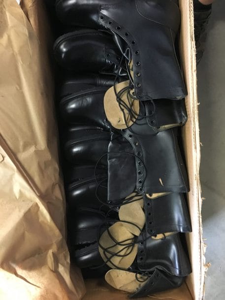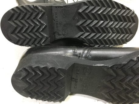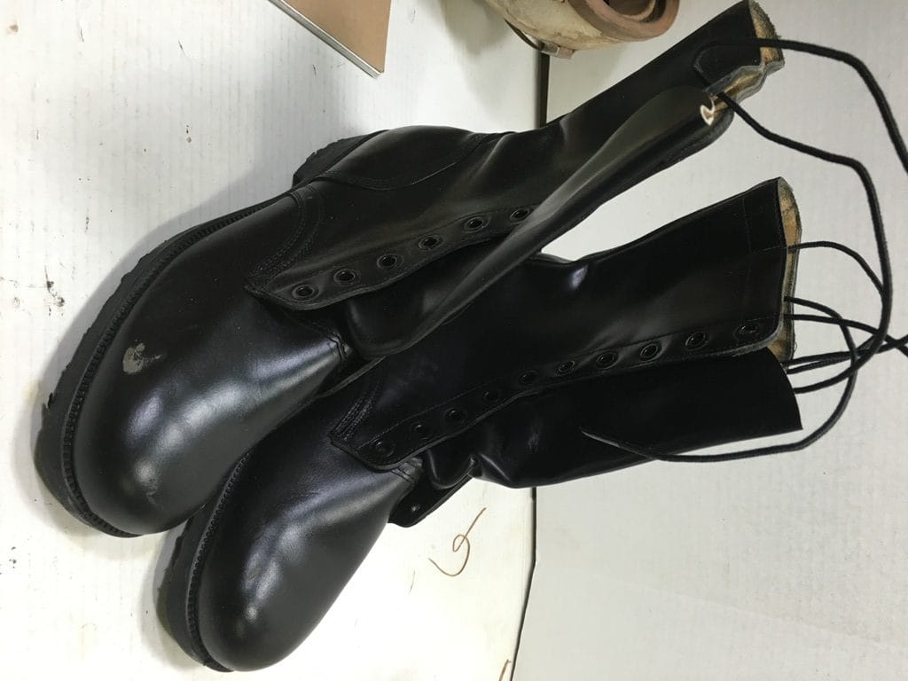 New, old stock with some shelf wear/scuffs from box from over the years storage. This type is similar to the late 1960’s and early 1970’s Chevron sole boots, except it has the notched leather about halfway up the lacing. Sizes include N “Narrow” R ” Regular” W ” Wide” and XW ” extra Wide” in width of the boots.