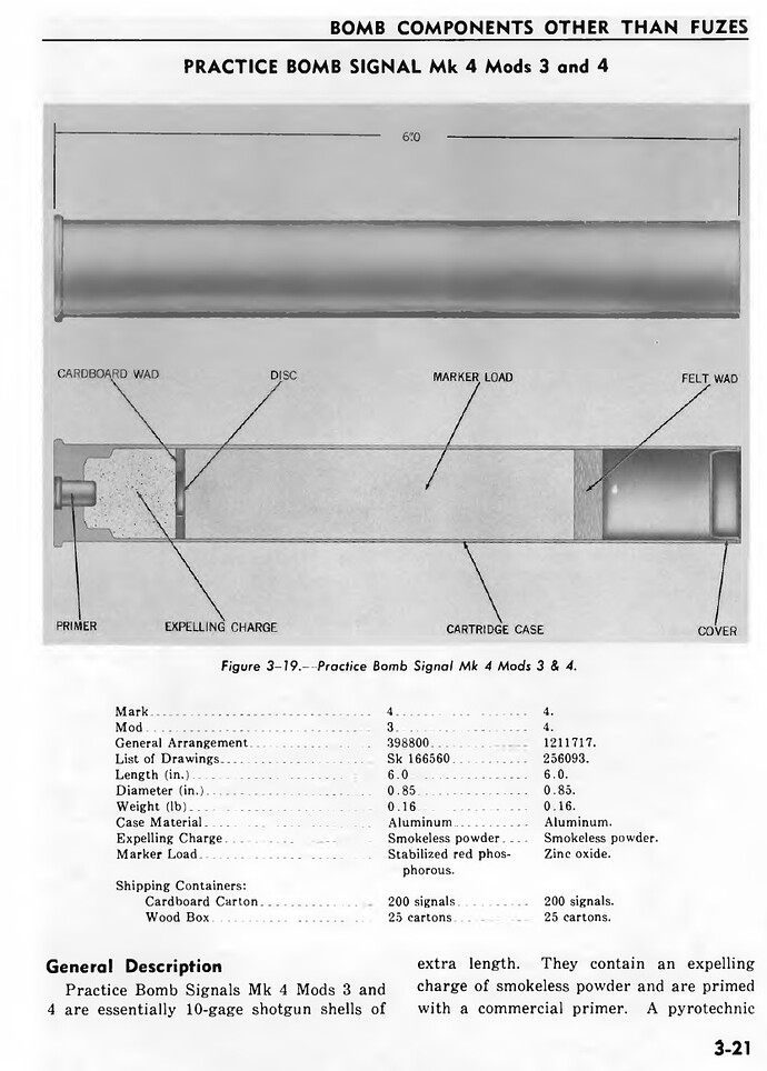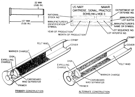 The cartridge case of the Mk 4 Mod 3 is extruded aluminum instead of paper from other models; a primer mixture with improved storage characteristics and a new pyrotechnic load.