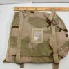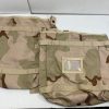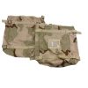 US Military Issue radio pouch in 3-color desert camoflage. Rectangular pouch with open top measures 13″ x 11″ x 3″. Made for securing a radio system inside of the MOLLE II main pack, this pouch has attachment straps on two sides for that purpose, and an adjustable nylon strap/plastic buckle harness inside of the pouch compartment. However, two d-rings on opposite sides of the pouch allow attachment of a general purpose strap or sling, transforming this pouch into a convenient open-top shoulder bag. Water-resistant nylon with polyurethane backing and a large drain grommet at the bottom means an all-weather bag. Would work well for stowing rain gear while keeping it easily and quickly accessible, or for a small game bag when on a hunt. See-through name pocket on the back for identification