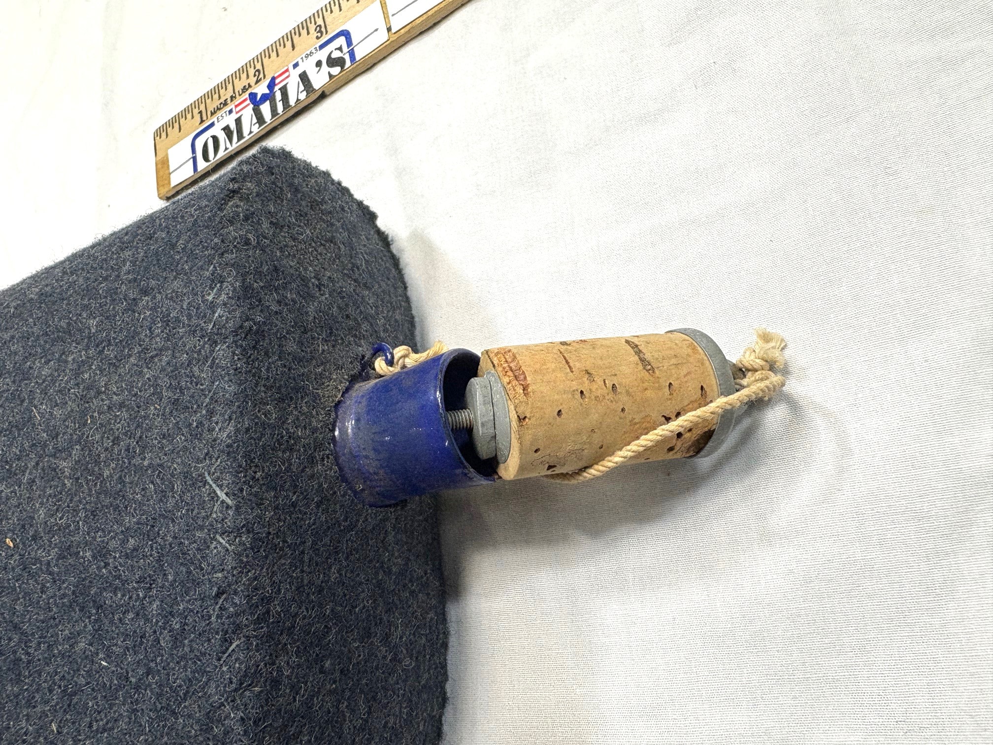 RAF BRITISH WATER BOTTLE Original issue canteen. Blue wool covered porcelain canteen *CORKS don’t fit inside of opening, have to be replaced. They have swollen overtime*