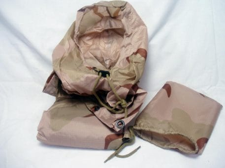 Nylon ripstop reproduction of the military poncho. new and in 3- color DESERT with draw string grommets and arm snaps, just like the us rain poncho. about 80″ X 54″ when laid out flat.