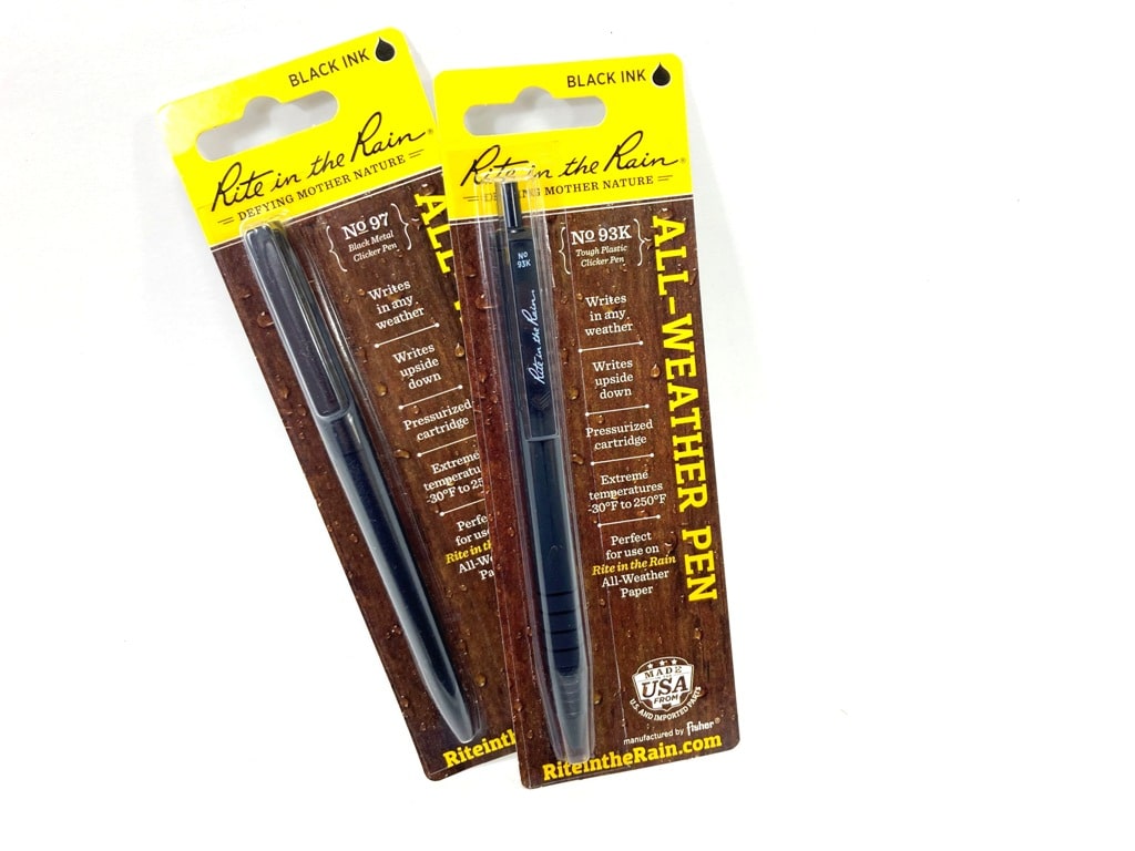 Waterproof black ink pens made for the rite in the rain notepads. Pressurized cartridge, durable in extreme weather conditions, -30 to 250 degrees.