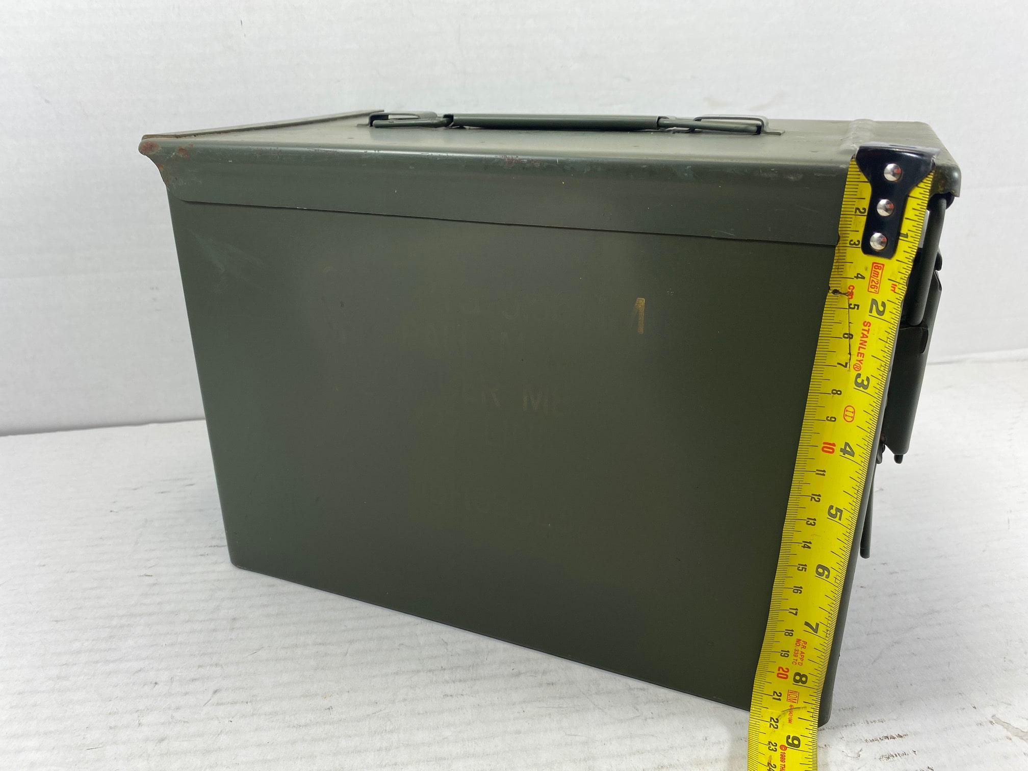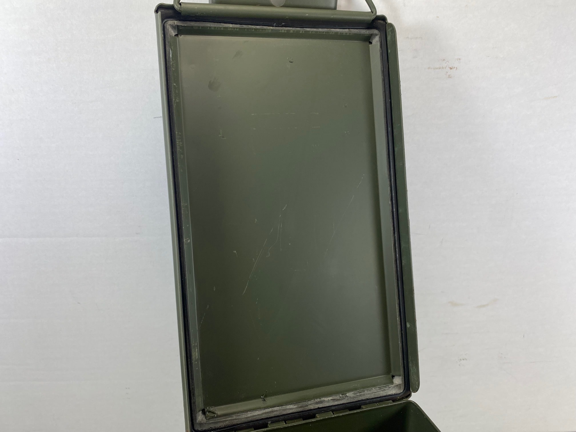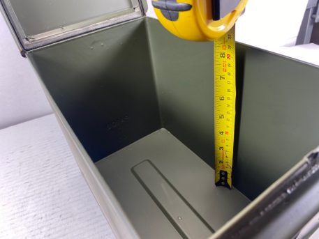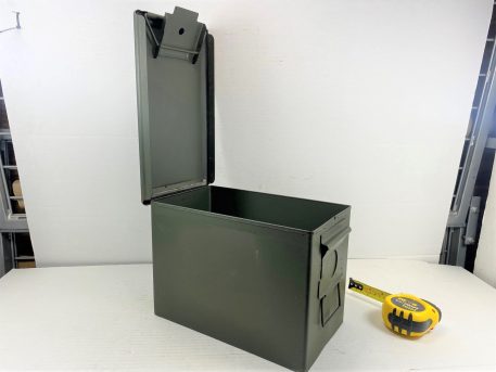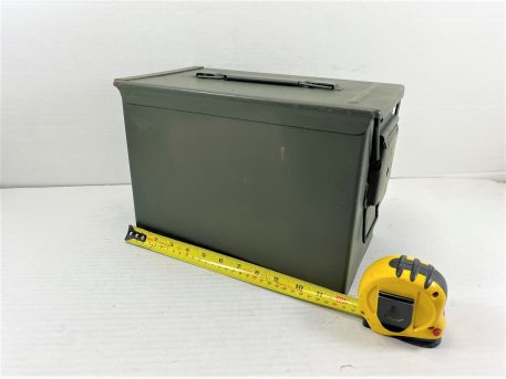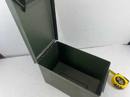 As with all used ammo cans, expect some minor surface rust as well. All parts and pieces are intact and working properly. Water-proof rubber gasket is in good “live” condition. Measures 7″ x 12″ x 8 1/2″ (tall). Weighs 7 lbs. *Shipping charges could be more depending on quantity ordered and shipping destination.