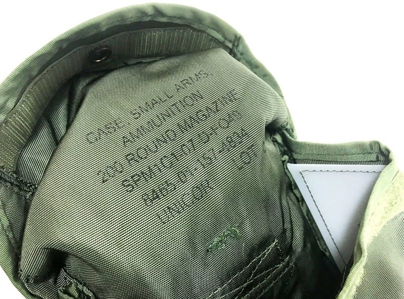 Real military issue. Saw pouch issue ammo pouch for the Squad Automatic Weapon(S.A.W.). Holds 200 rounds. Measures 2 1/2″ x 7″ x 9″ tall. Works great for binoculars too. Made in the USA