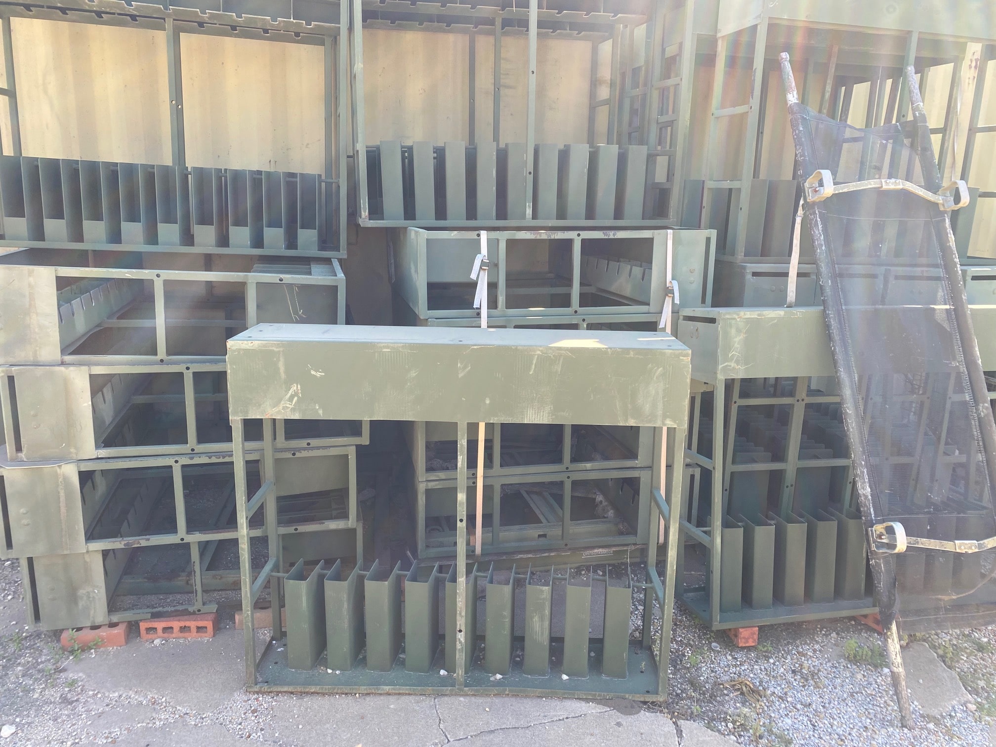 Used condition rifle racks for SAW type style rifles-machine guns. Racks can fit up to 10. In store purchase only.