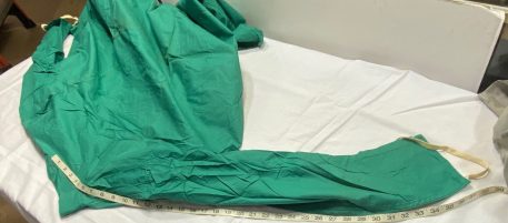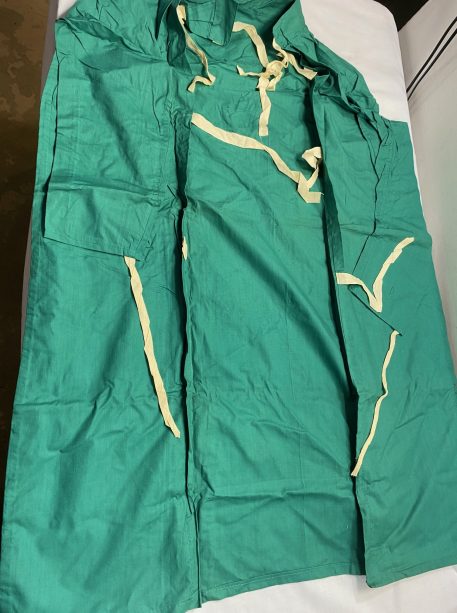 Scrub gowns for surgical procedures. New old stock, some shelf wear. *Photos shown with measurements are for size 42*