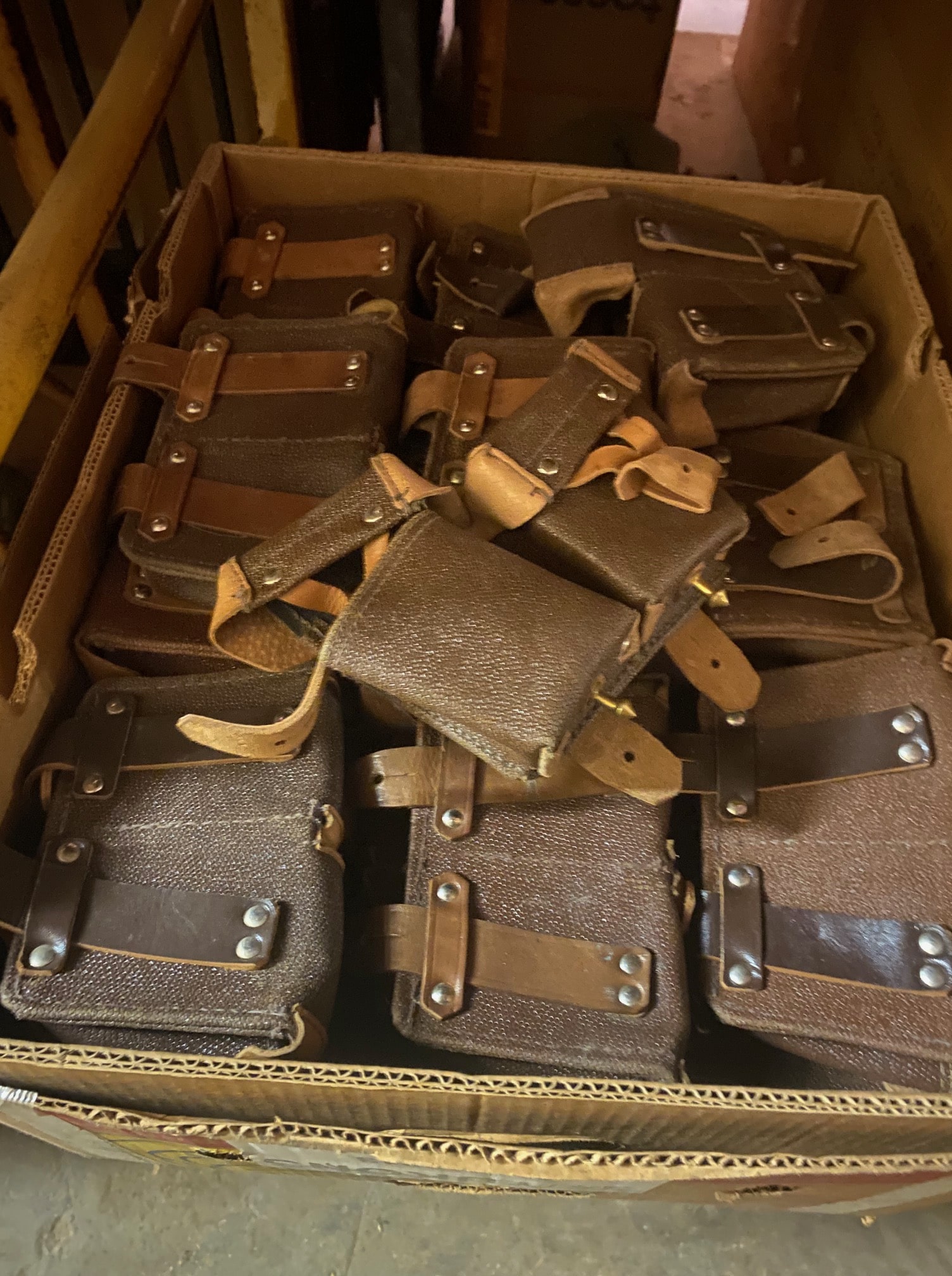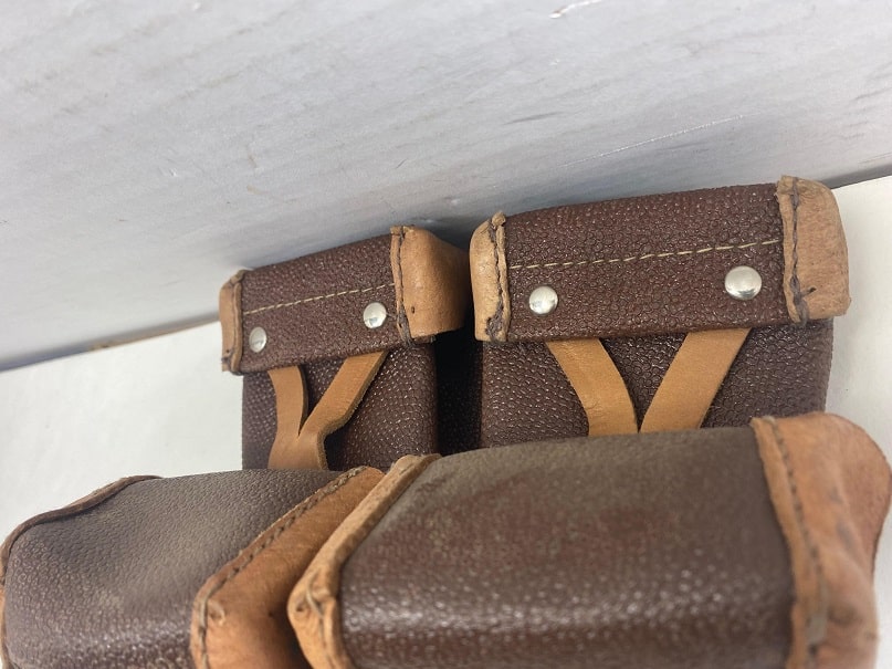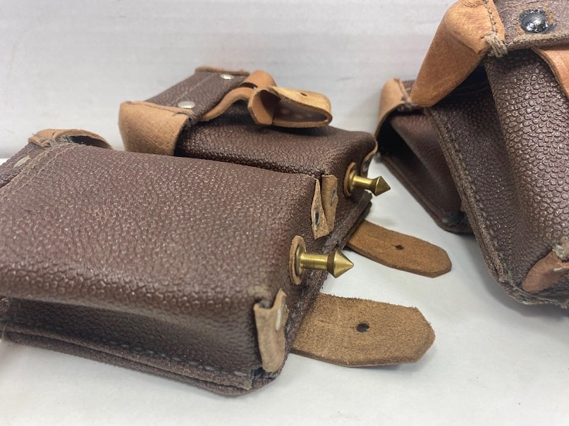 Color can vary due to these being surplus- but condition is very good on all of them. Leather material is in very good shape, no cracks or dry rot. New old stock condition Soviet Mosin Nagant Ammo Pouches.