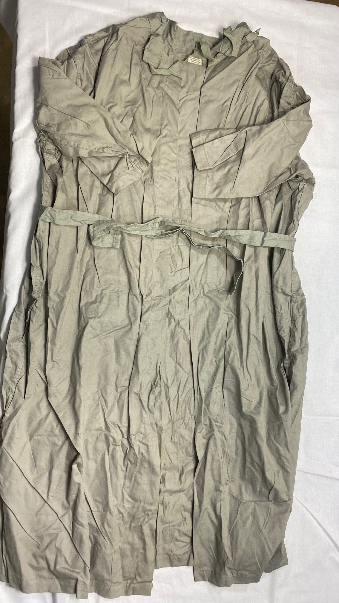 New old stock scrub gown for surgery operations. Grey, “PENN STATE”, no size tag. Looks to be Medium-Large in size.