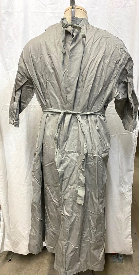 Scrub gowns for surgical procedures. New old stock, some shelf wear very nice. Solid grey.