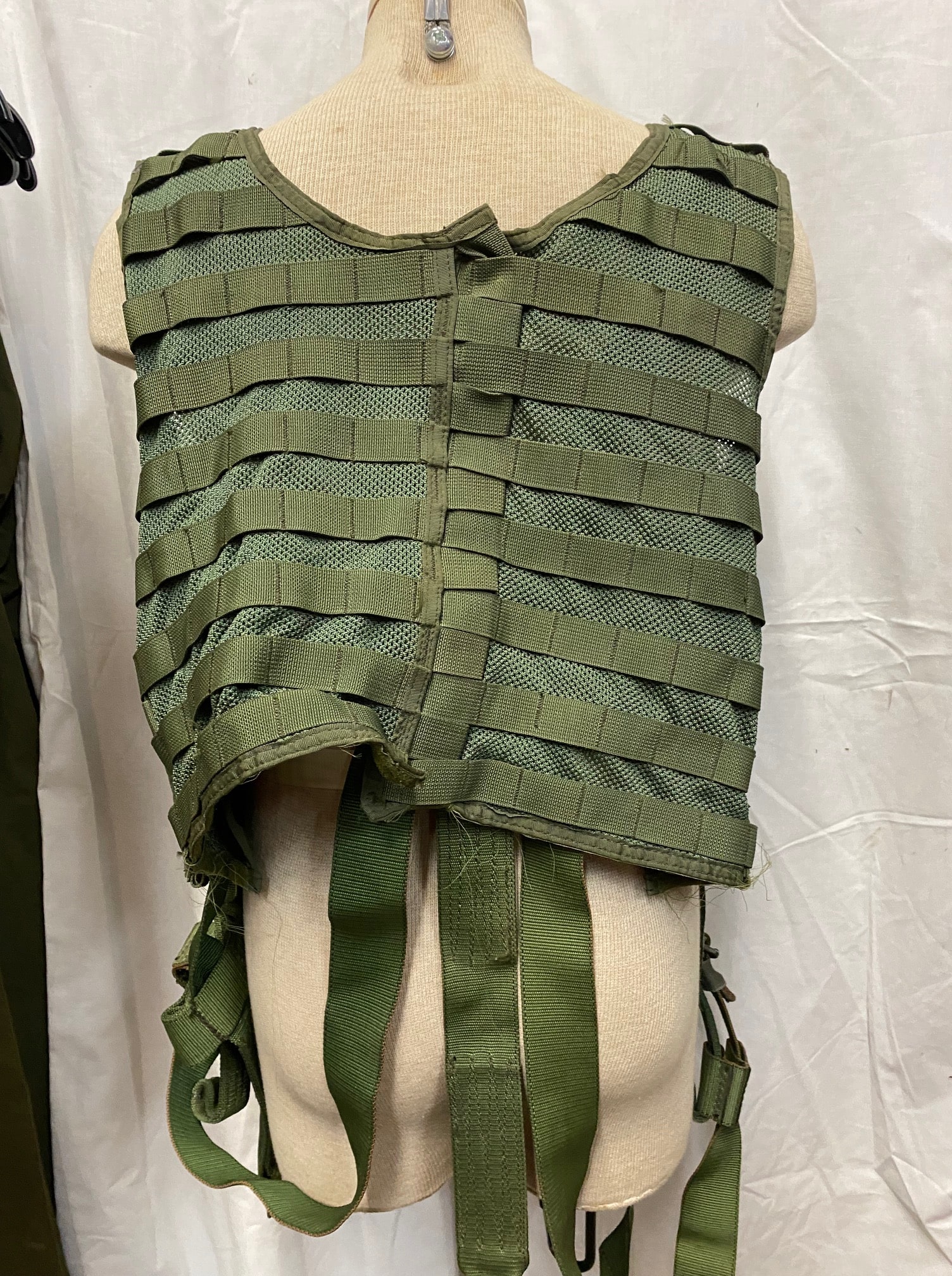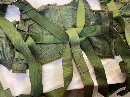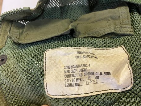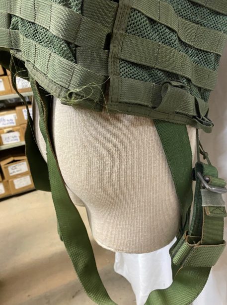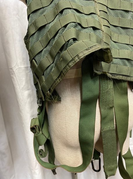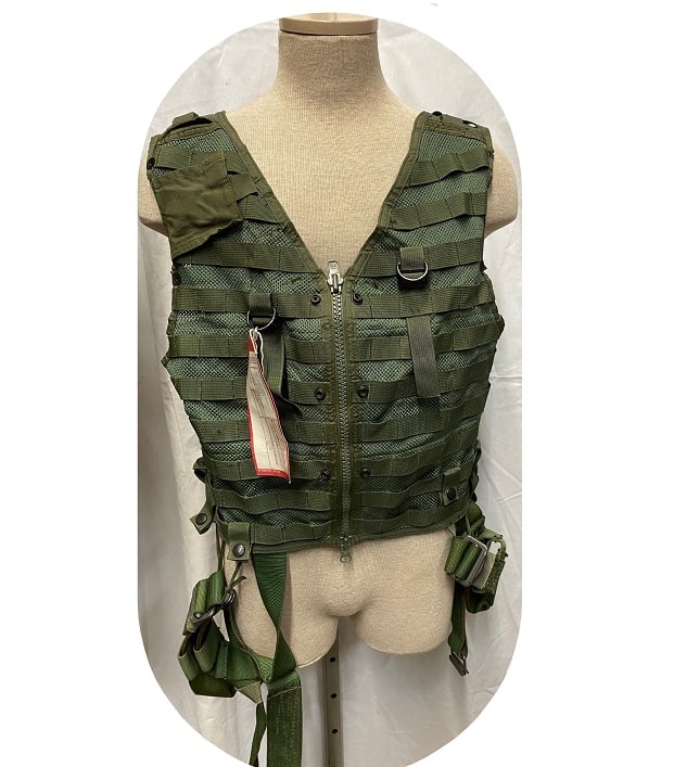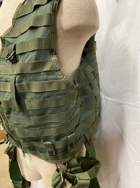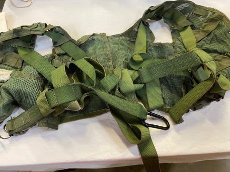 US military spec Olive Drab codura nylon survival vest. MESH style, with suspension straps. Used condition, serviceable. Standard issue for U.S. Navy and Marine helicopter non-ejector aircraft aicrews.