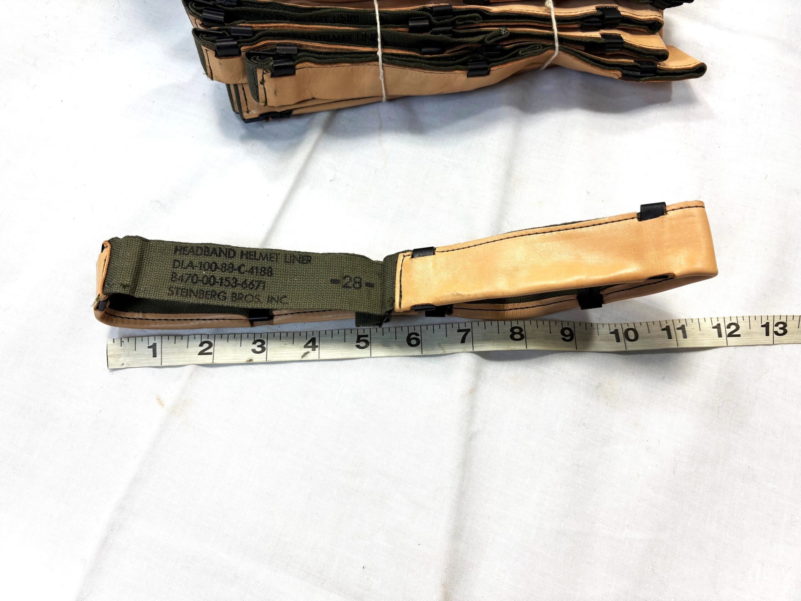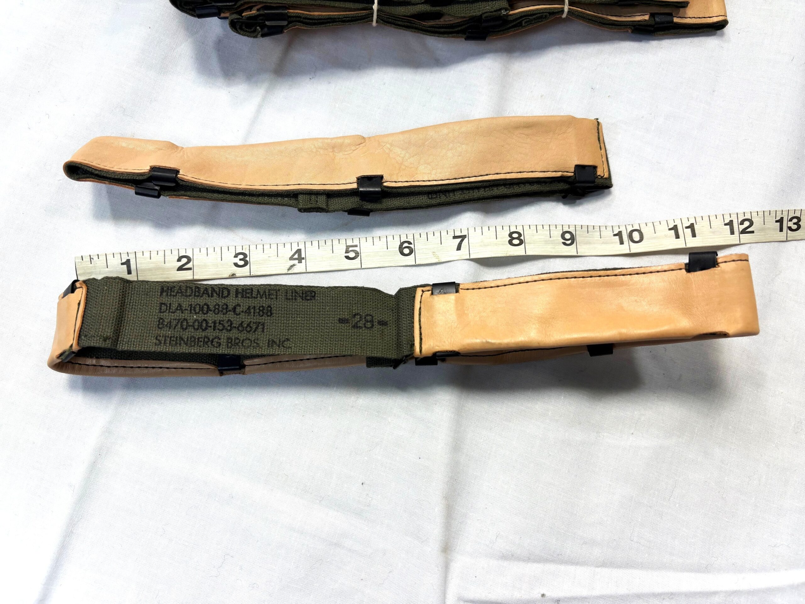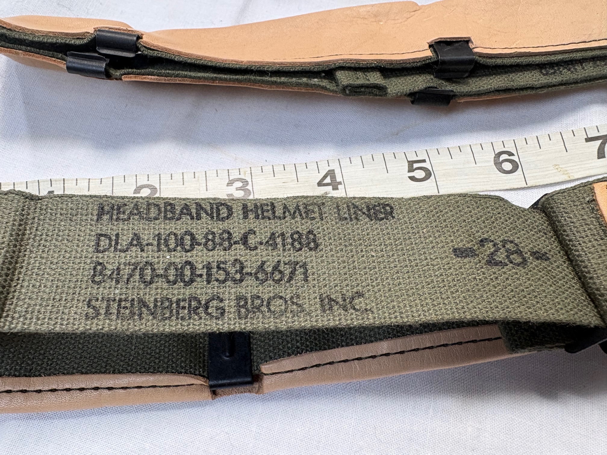 These sweatbands are for the original GI steel pot helmet liner. Leather and feature classic snap attachment metal clamp-over. NEW CONDITION!