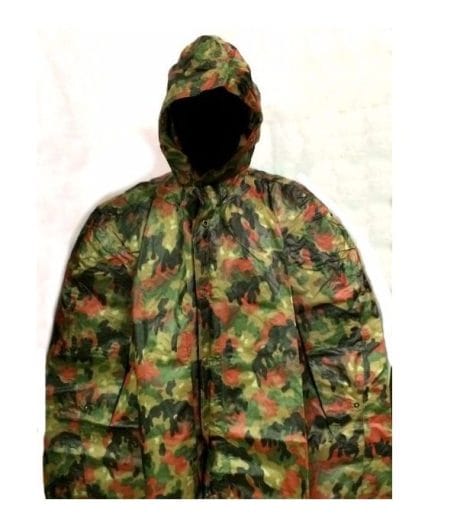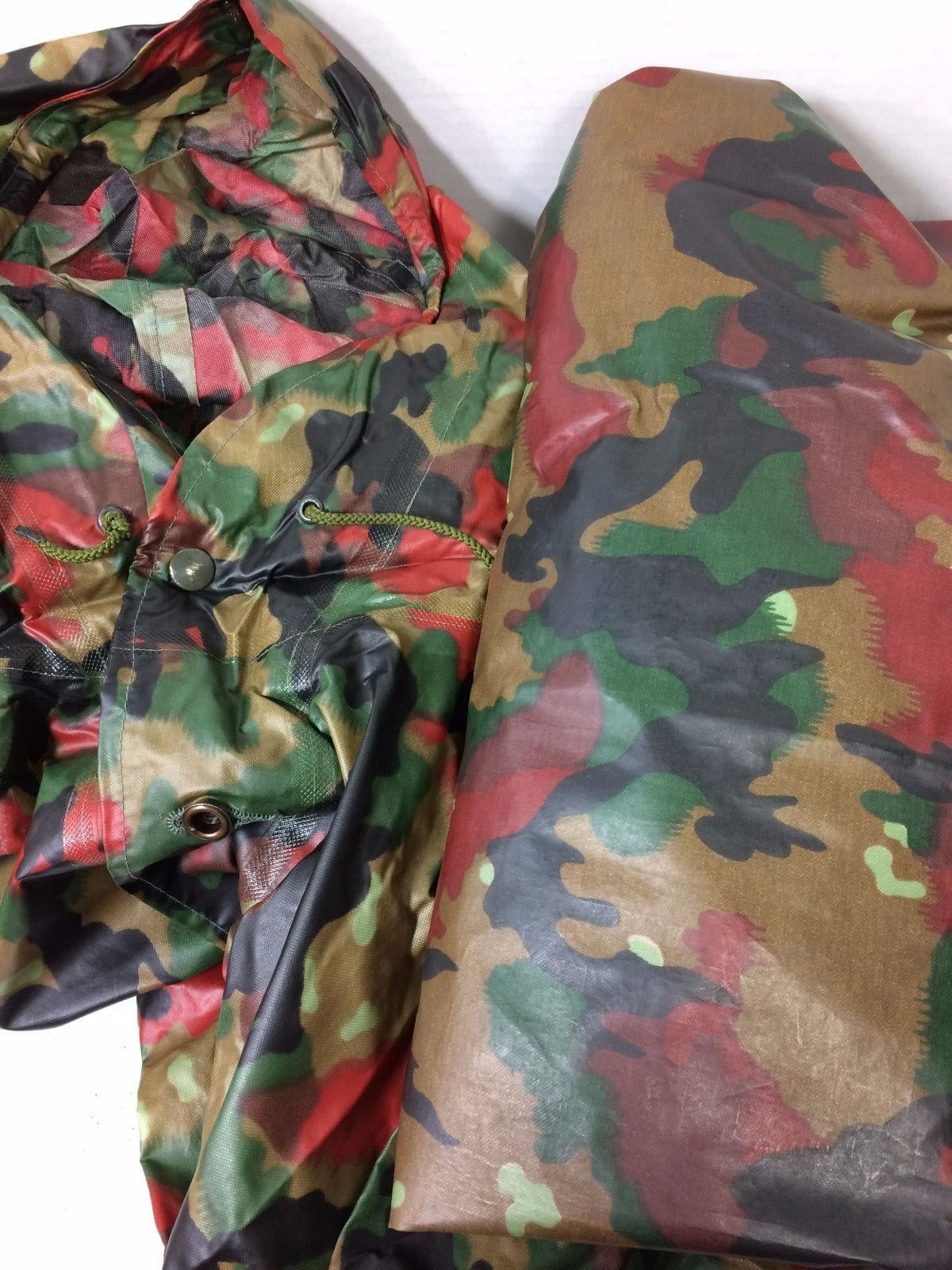 Swiss camouflage poncho. Tailored, drop-over type design, with arm vent holes in the side.