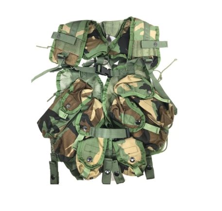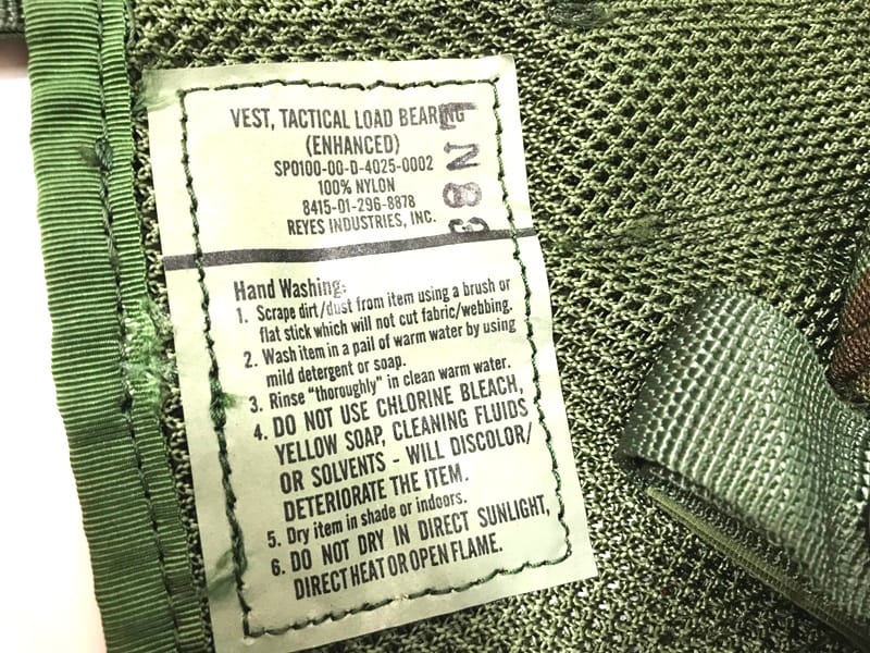 2000 dated, 100 % nylon. Made by Reyes Industries, Inc. Mag and grenade pouches, made to accommodate the equipment belt.