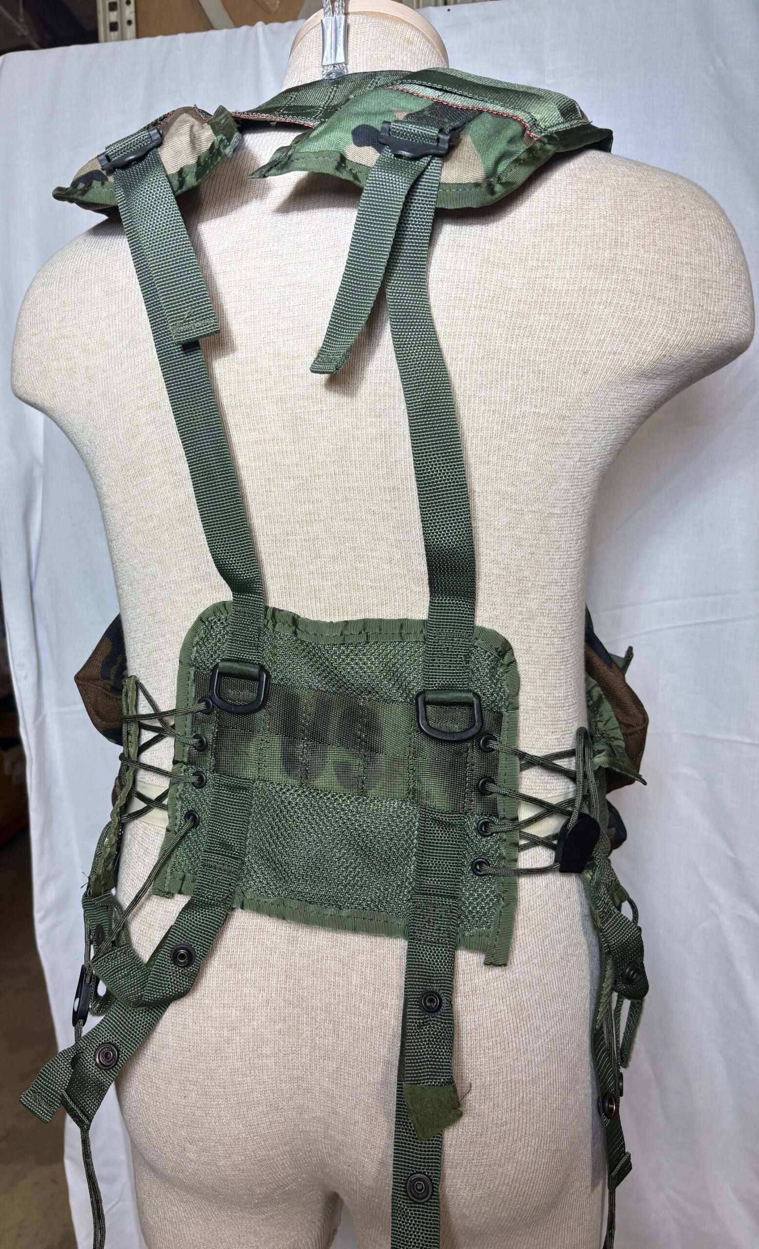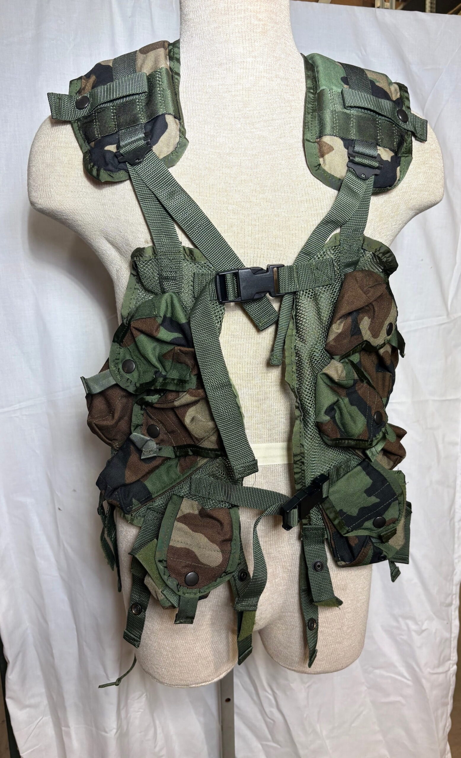 Classic woodland tactical load bearing vest US issued to troops.