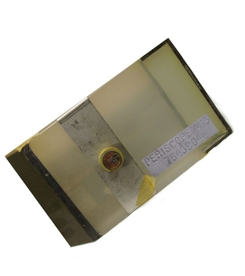 Heavy duty tank turret periscopes. Late 1970’s era. These are placed around the inside of the turret so that the tankers can see out without getting hit. Because of their age they are cloudy and very hard to see through, but might make a great conversation piece, door stop, or the ultimate paper weight at about 10 lbs. each. LOTS OF OXIDATION, RUST.