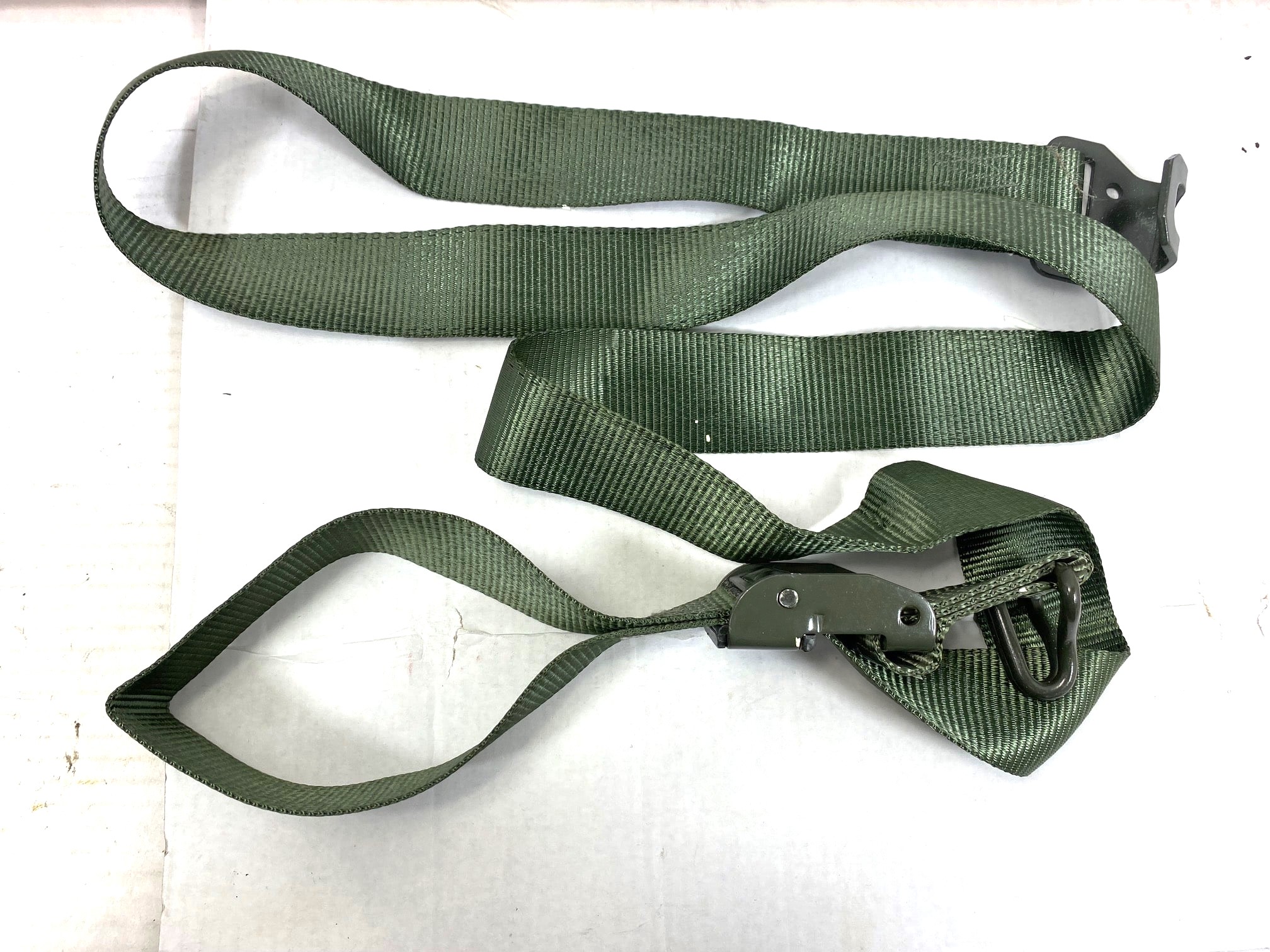 6” ft military surplus strap with spring loaded adjuster for easy/fast secure tie down. Old School Olive Drab!