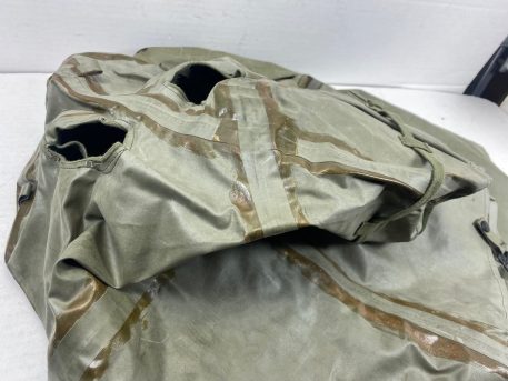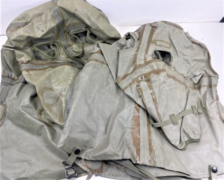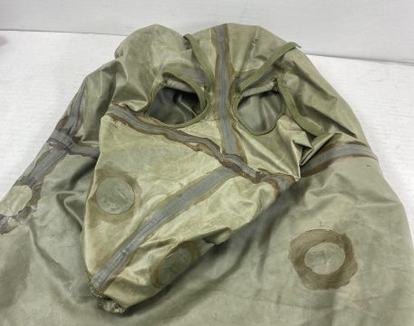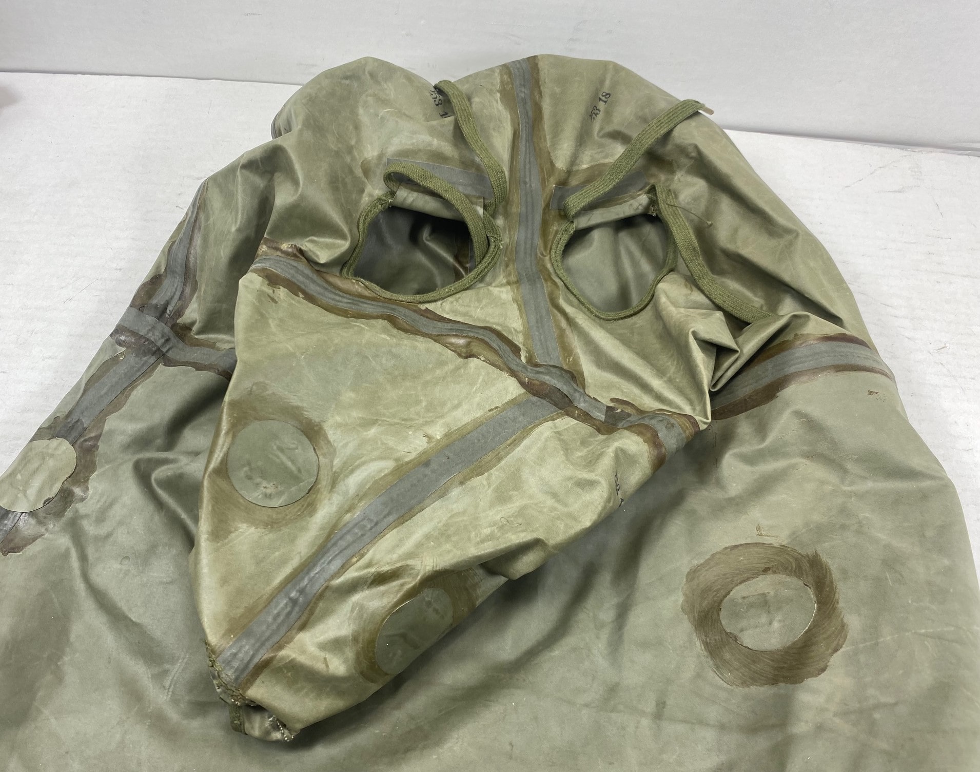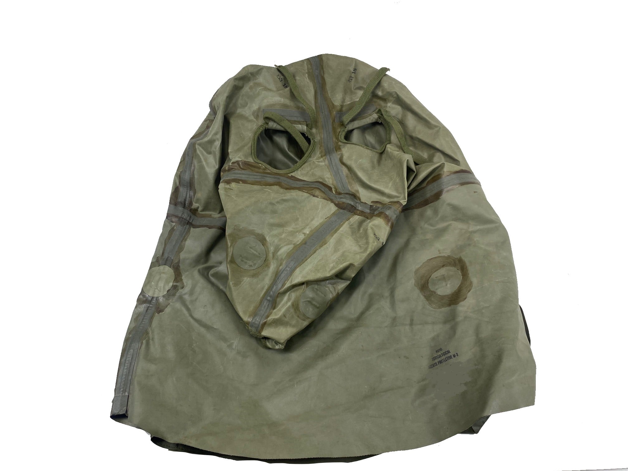 Toxological Hood. Heavy and awkward rubberized hood for hazardous exposure work. Old stock surplus. Miscellaneous manufacturers/60’s-70’s dates. Color shades of rubber will vary.