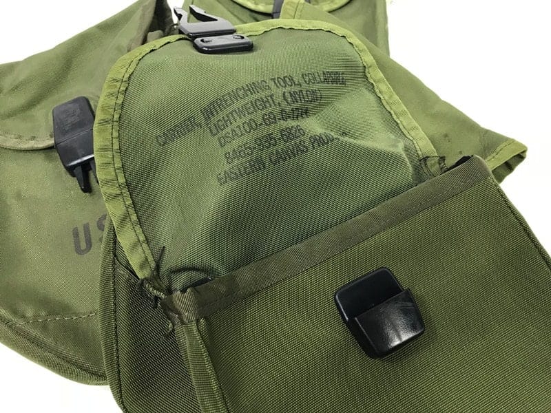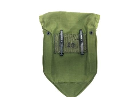 Nylon e tool cover for the trifold shovel used by the military in vietnam. Made of nylon, LC-1 Alice issue. New old stock. Some storage wear. Scuffs, staining, very little.