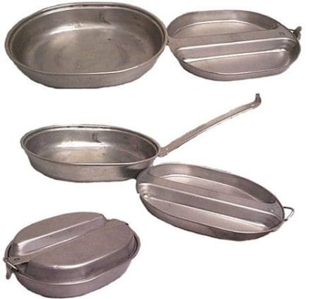The U.S. military mess kit has remained virtually unchanged in overall design since WWI. There is no need to change it. Anyone who has used it, knows it is the best of the best. Easy to clean stainless steel, and a compact simple arrangement make this kit convenient to eat from and pack. Used with some dings and dents but still very serviceable.