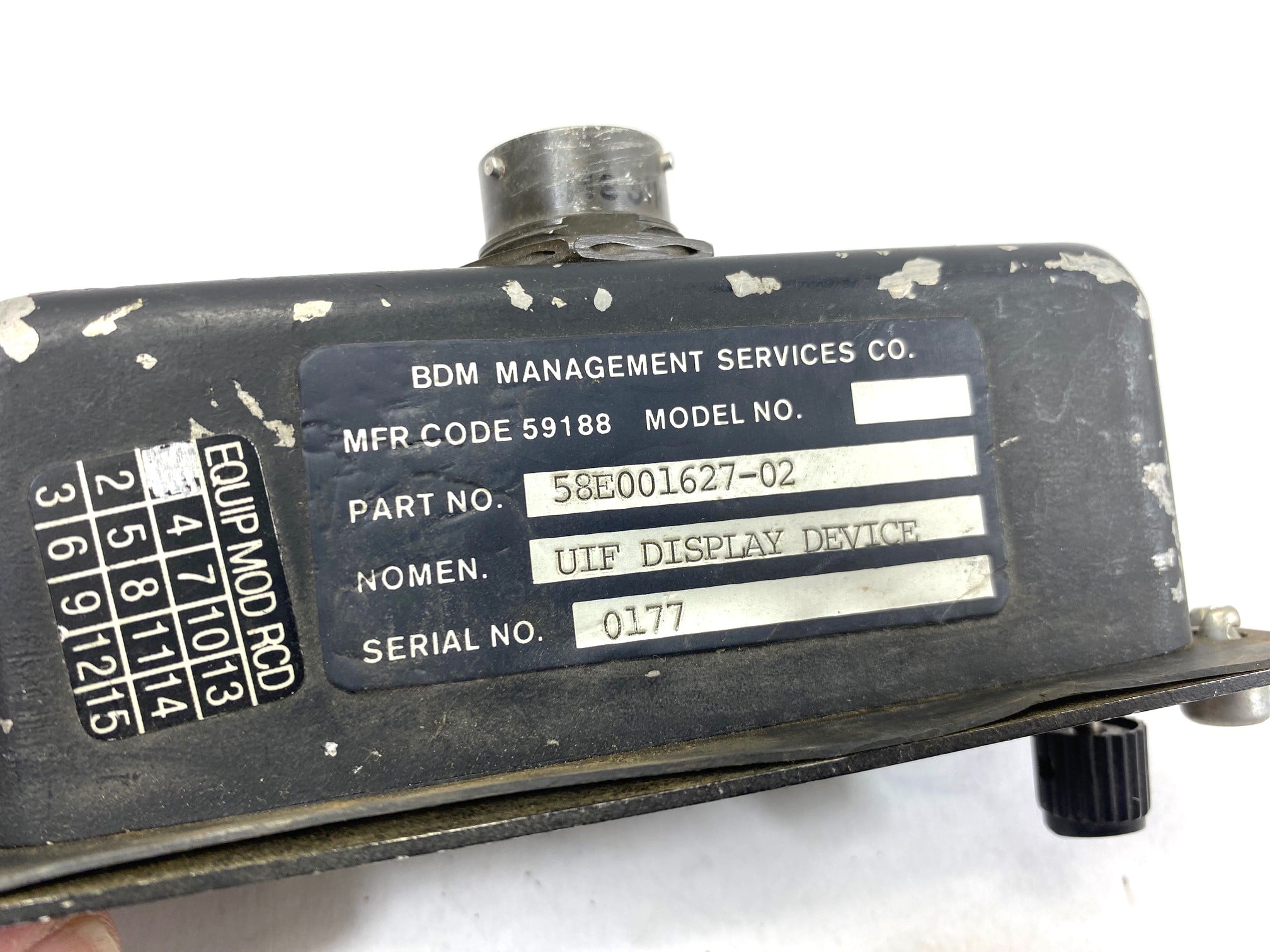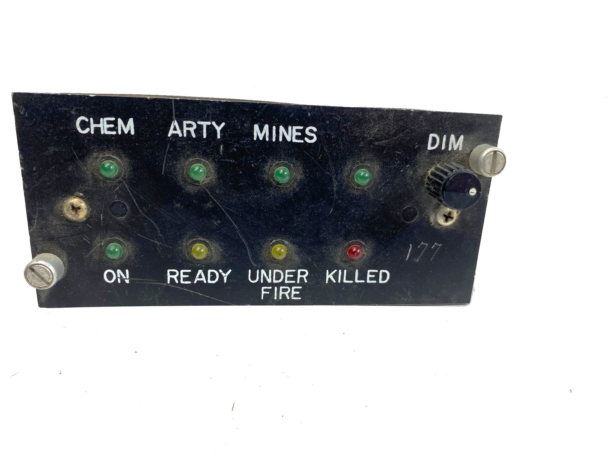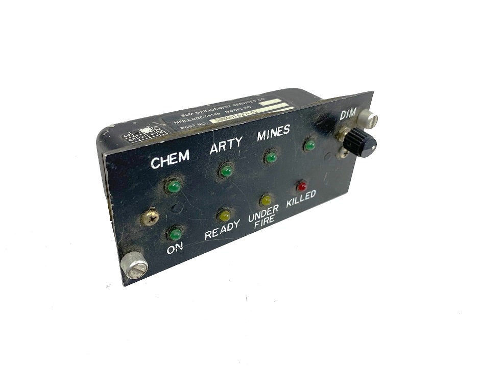 Military UIF display device component. Used condition with lots of scratches, pushed in lights, missing pieces. May or may not function as intended. De-mil surplus.