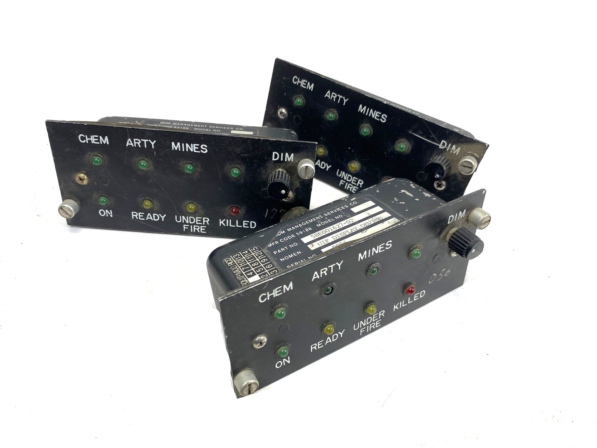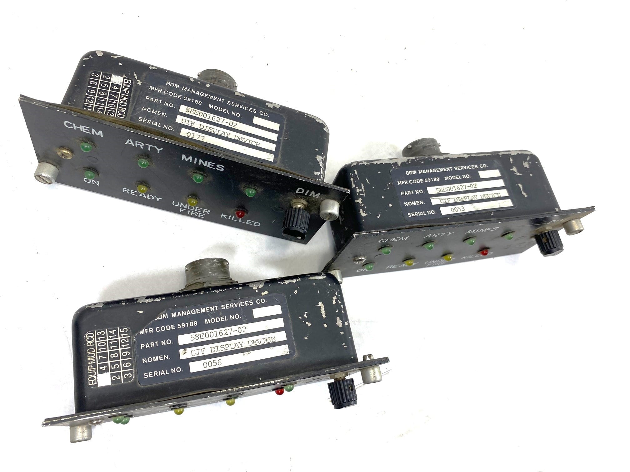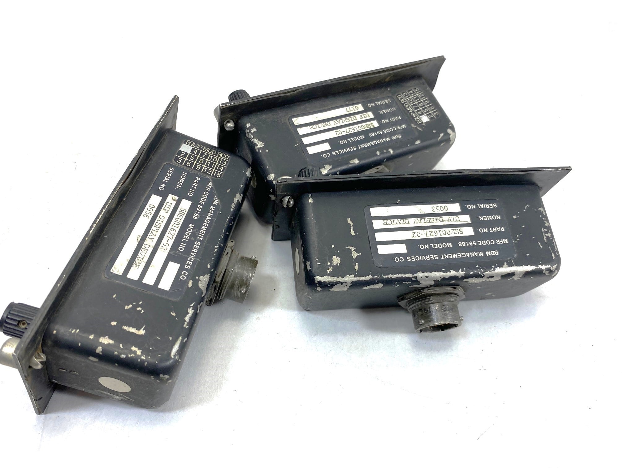 Military UIF display device component. Used condition with lots of scratches, pushed in lights, missing pieces. May or may not function as intended. De-mil surplus.
