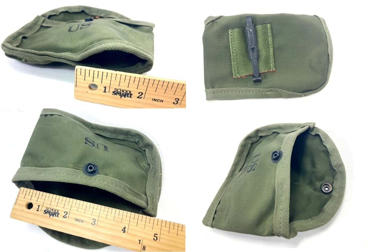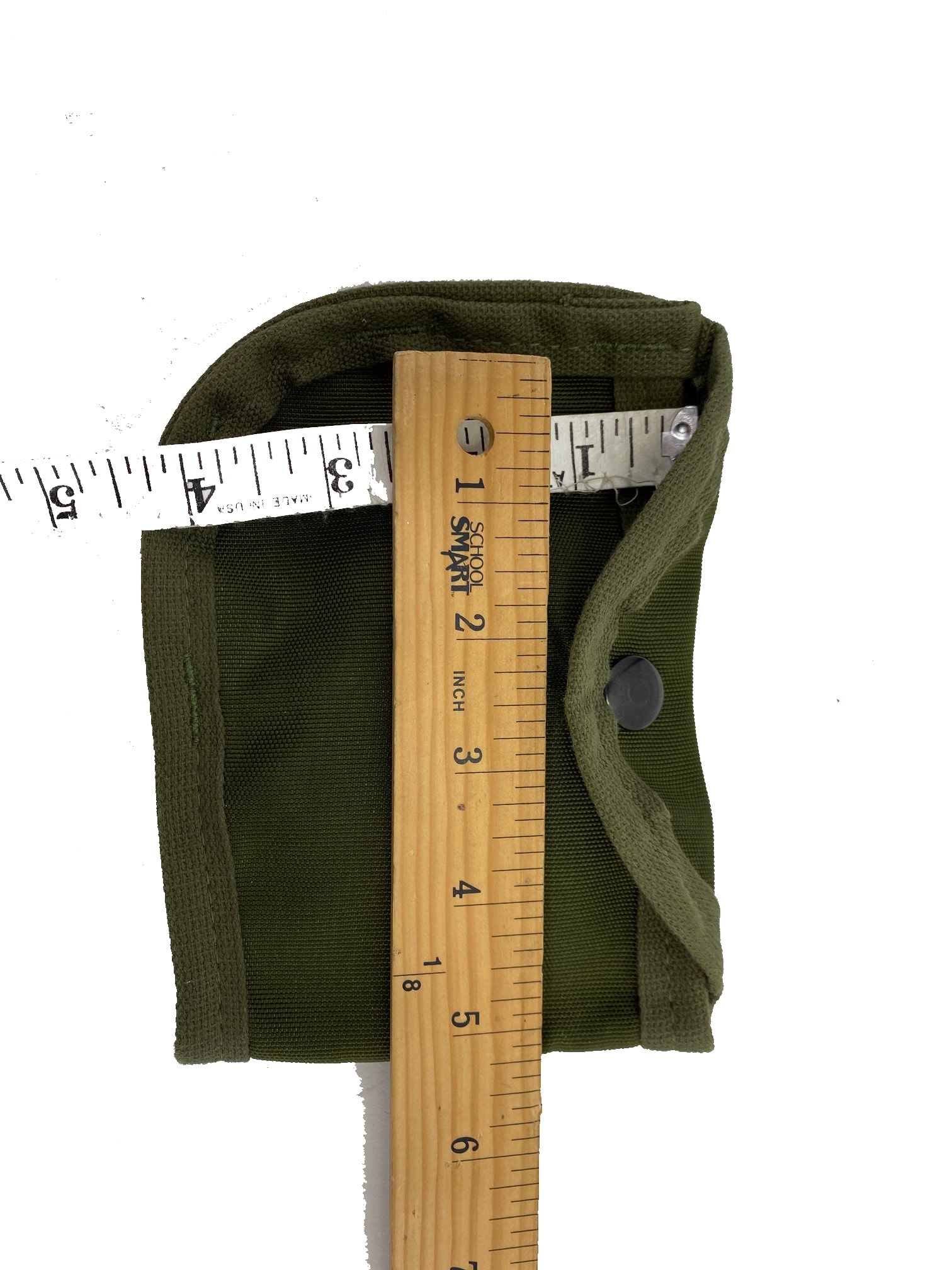 US made olive drab nylon hatchet cover with alice clip. New genuine GI stock. Color shades will vary. Metal button snap.