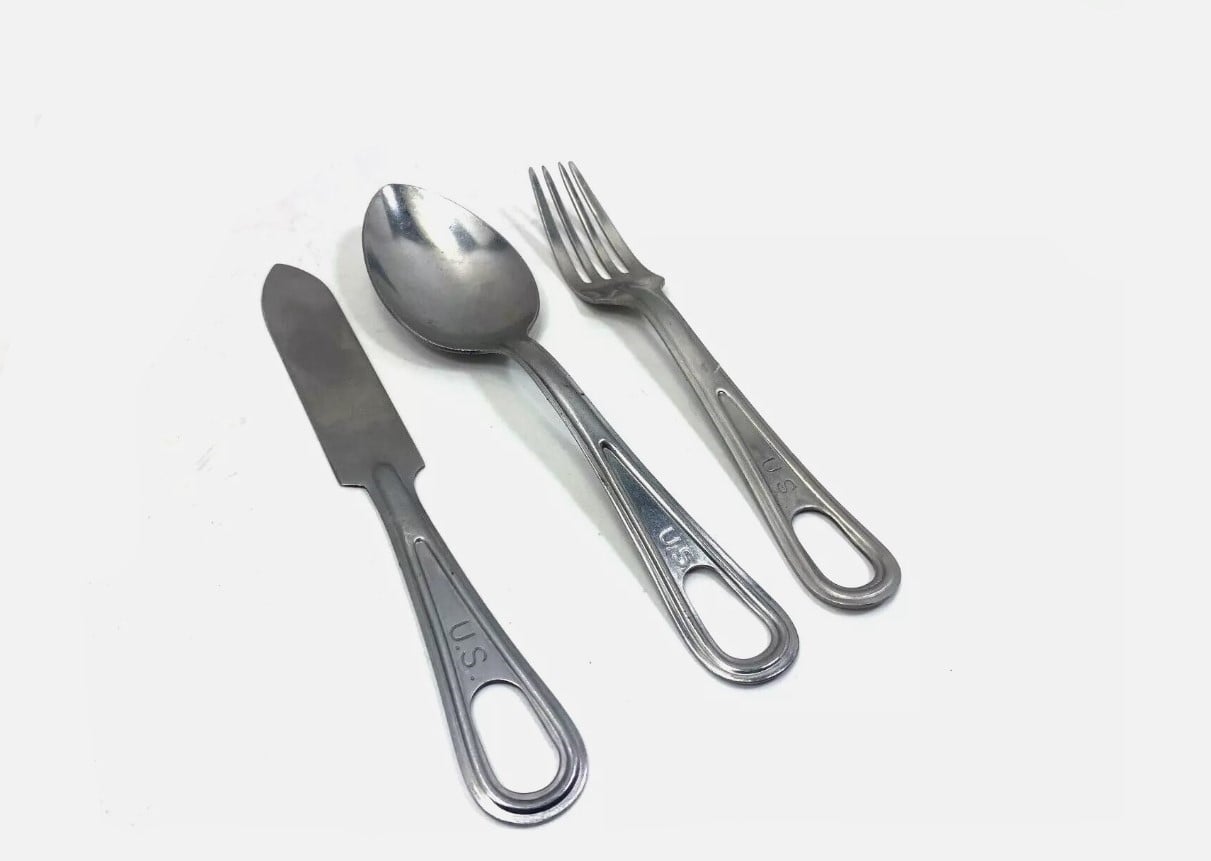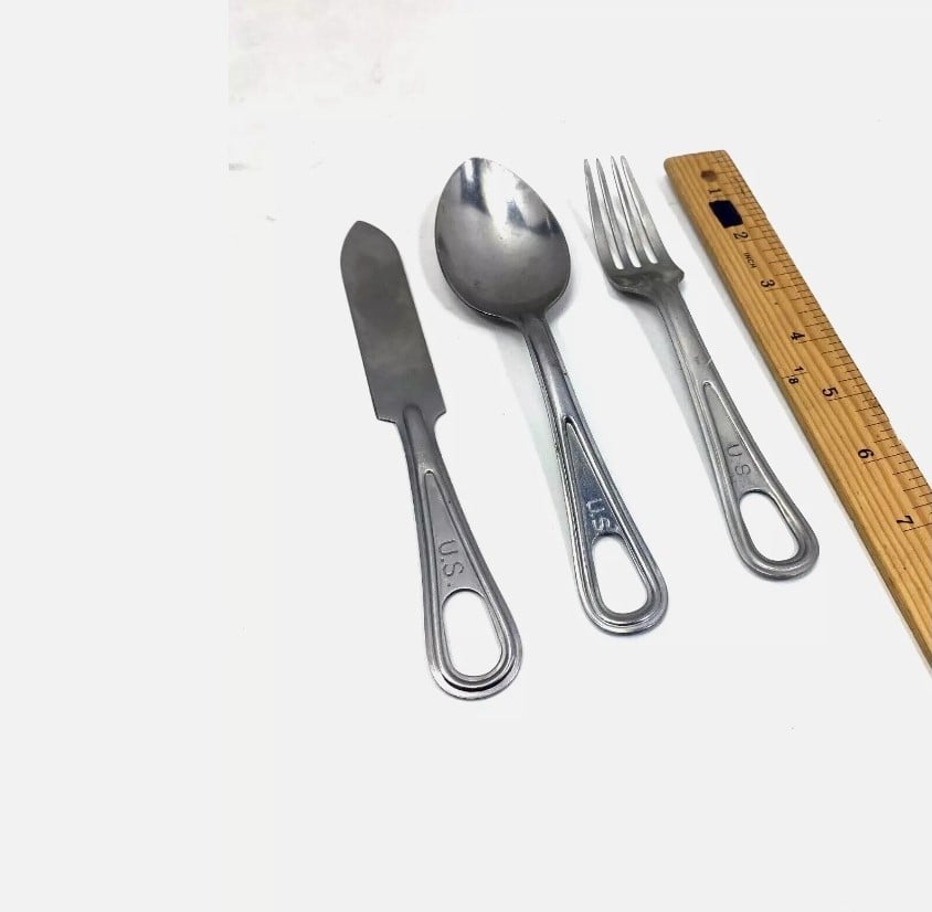 1 Knife, 1 Fork, 1 Spoon. US Mess Kit 3pc Knife Fork Spoon Set, mess kit utensils