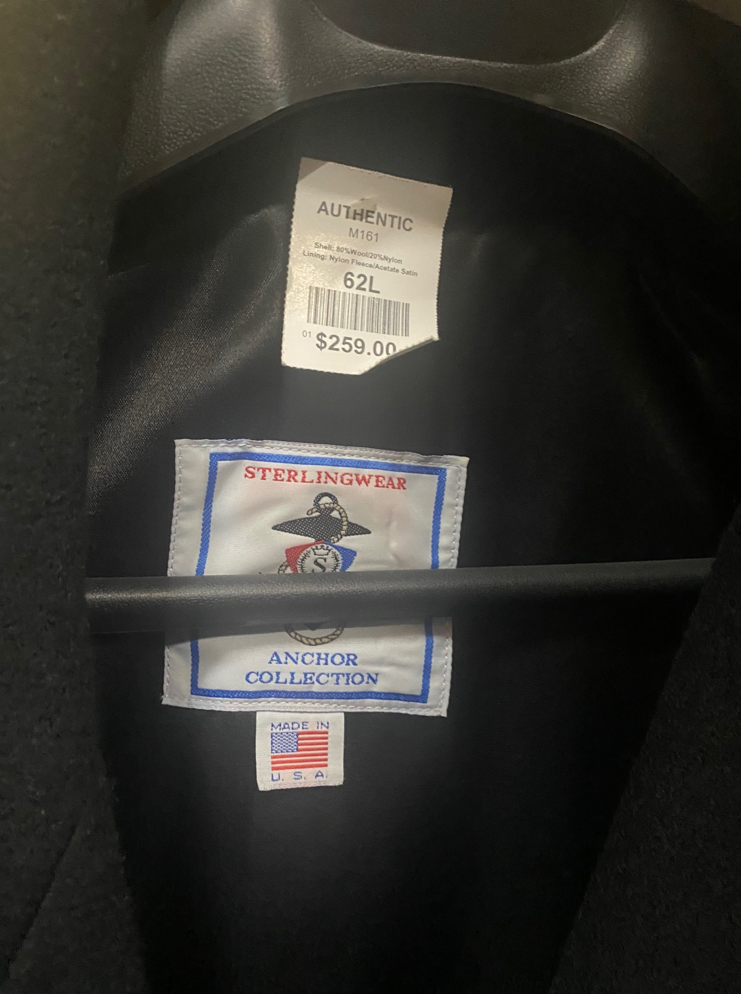 Tags: anchor, big & tall coat, big & tall peacoat, big size peacoat, navy peacoat, peacoat, sterling, sterling anchor collection, us made, usn peacoat