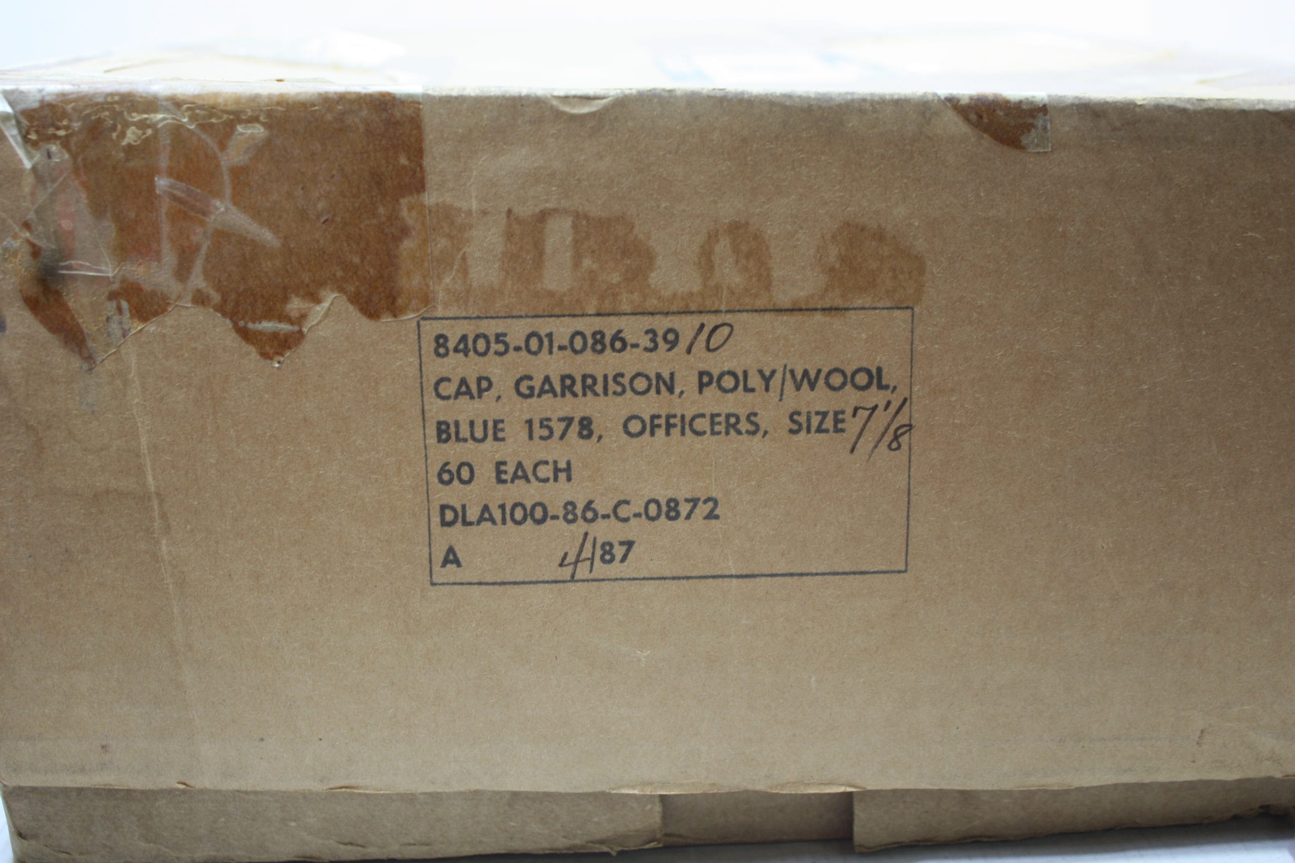 Airforce men officers blue garrison cap. Folding, flat, soda-jerk style cap worn by Officers overseas in the Air Force. New, old stock size 7 1/8