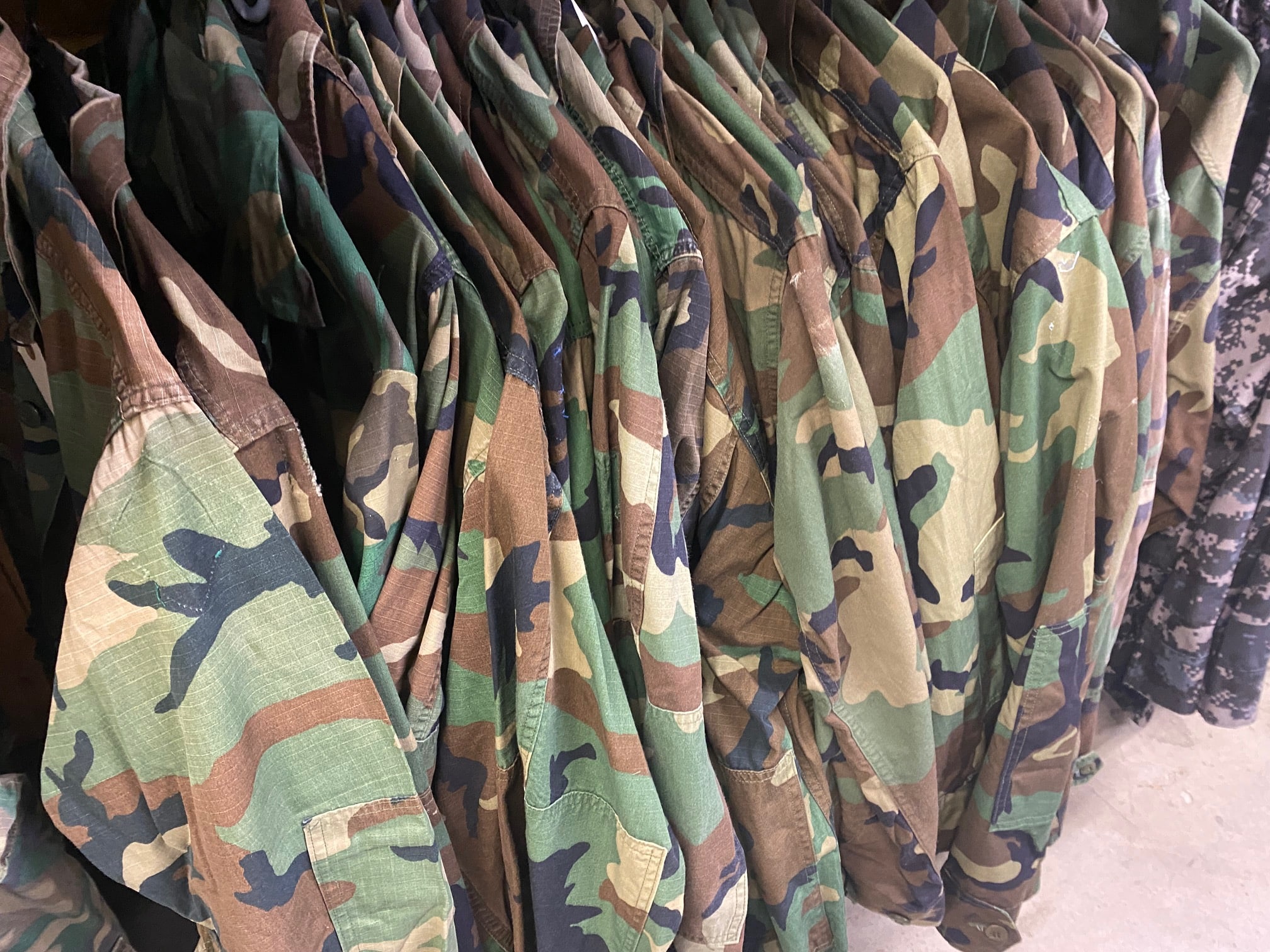 Used woodland camo bdu shirts. Great for paintball, costumes, air-soft. Woodland camo color only.