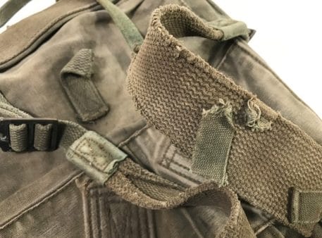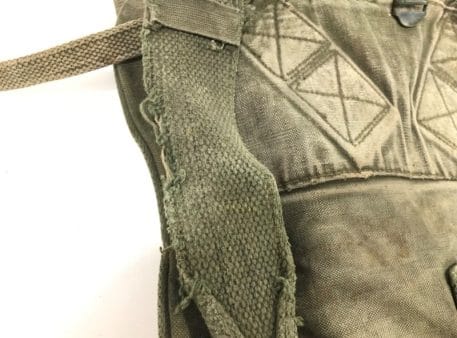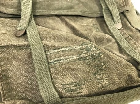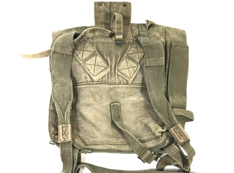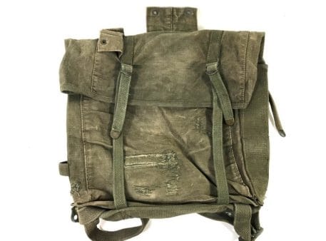 Marine corps backpack. Top Pack . Olive drab vietnam era. Very faded, lots of repairs and stitching, fraying on shoulder straps. Used-fair old stock condition. Good for basic display. No returns or refunds on this one.