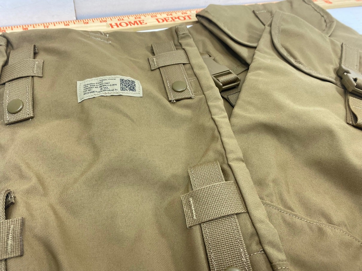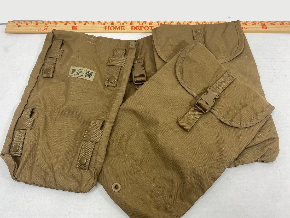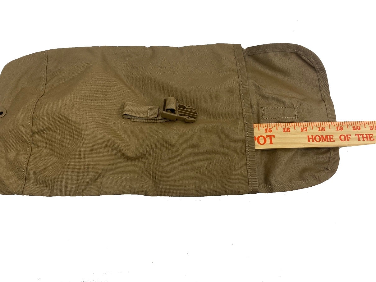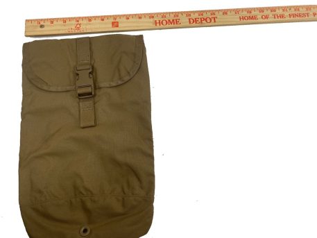 UNITED STATES ISSUED HYDRATION POUCH FOR BOTTLE OF 1.5 QT hydration bladder system. Molle systems, coyote brown. New stock. A great accessory pouch as well with its Molle back attachments.