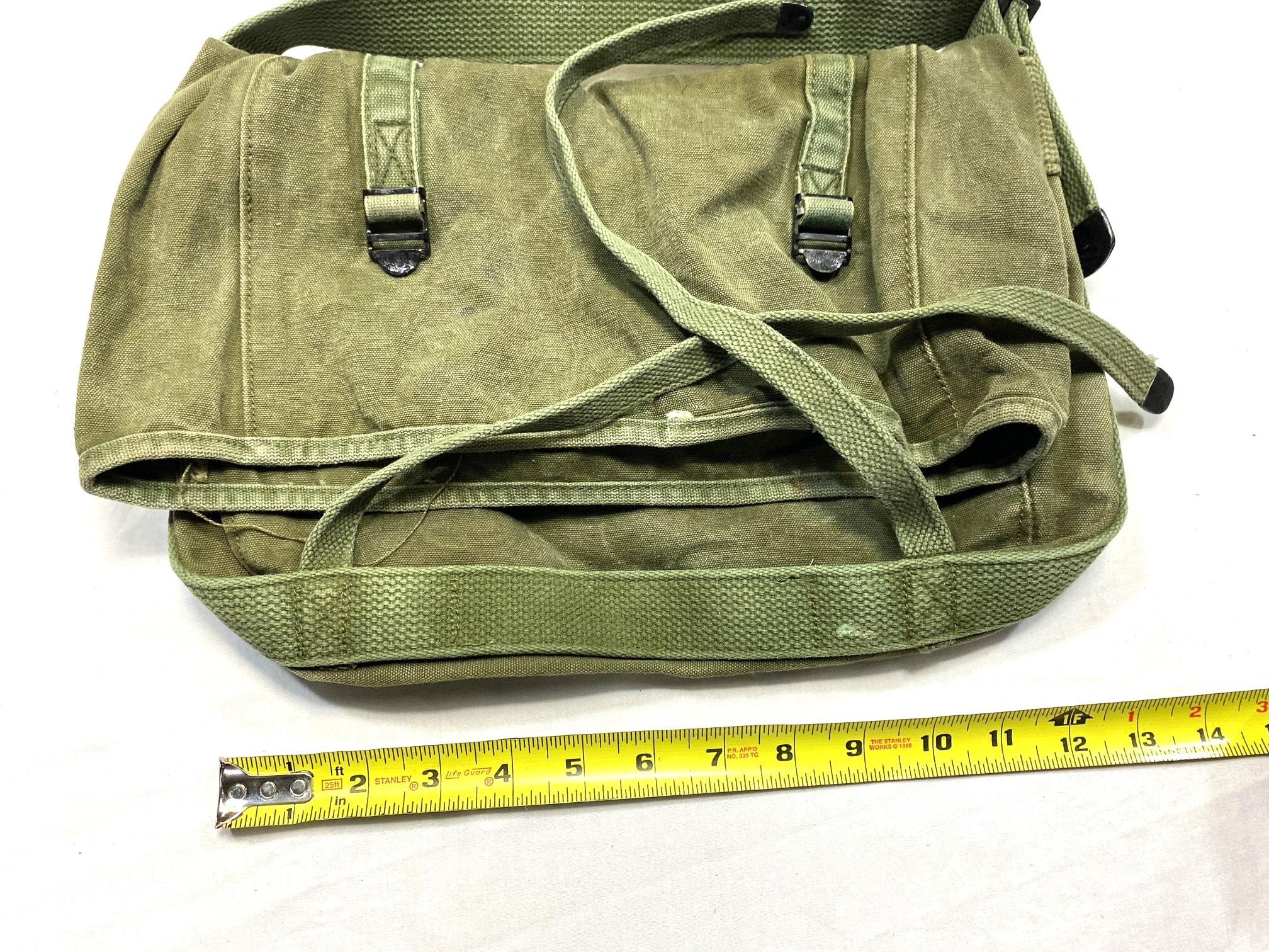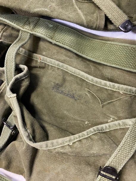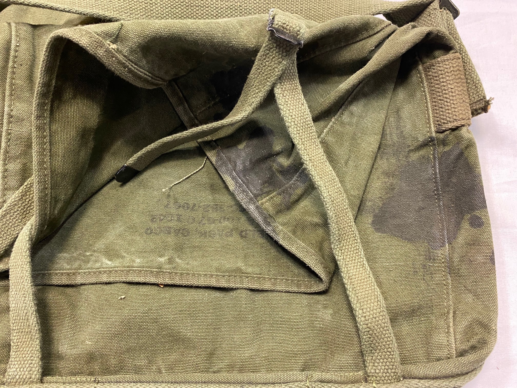 Bottom portion of the USMC M-41 Haversack pack. Marine Corps lower half Haver. Used fair condition. Storage wear, markings, discoloration. Serviceable.
