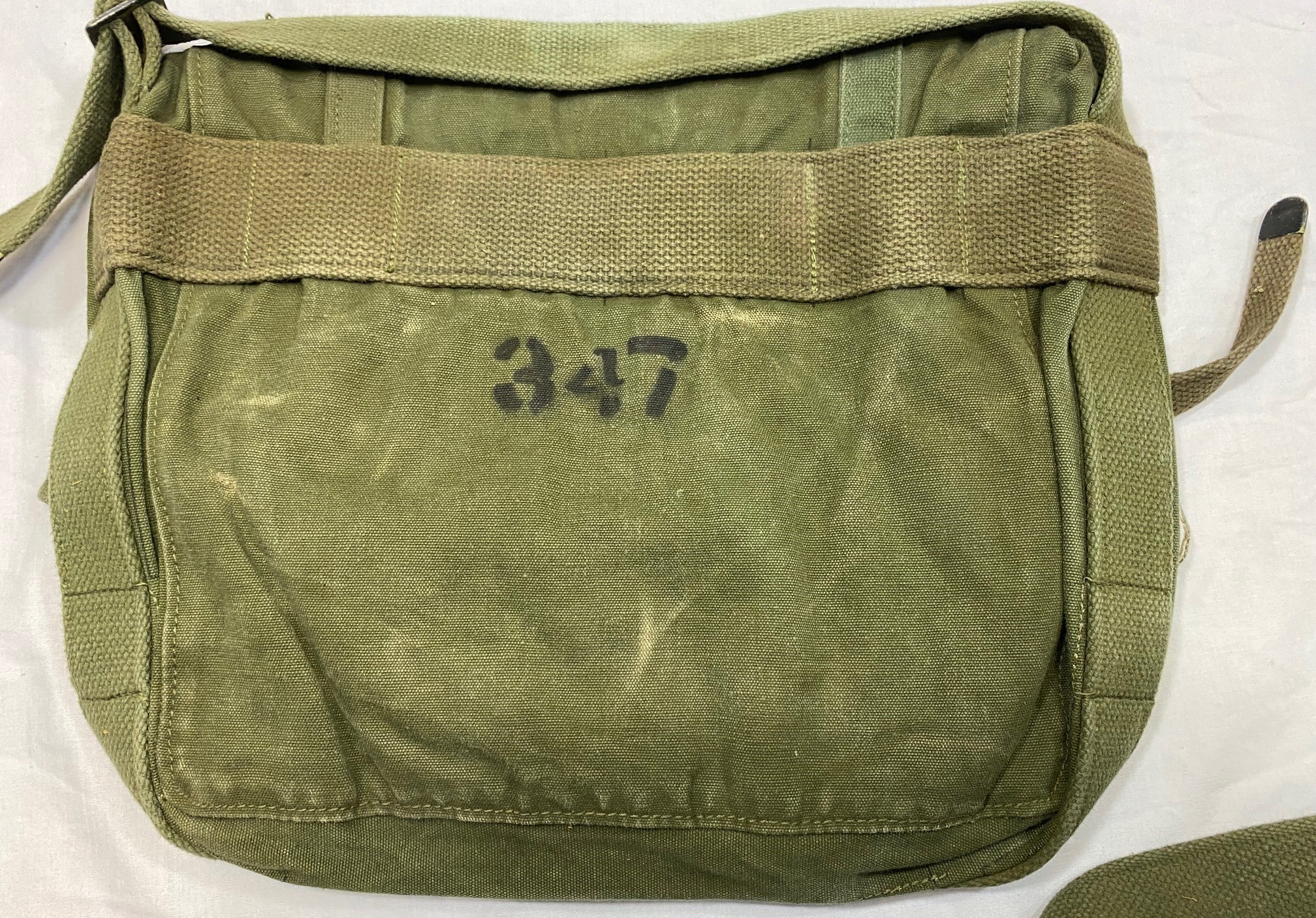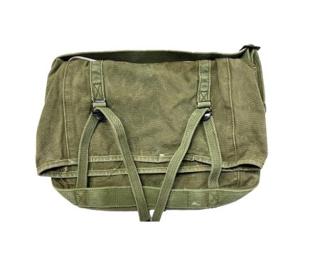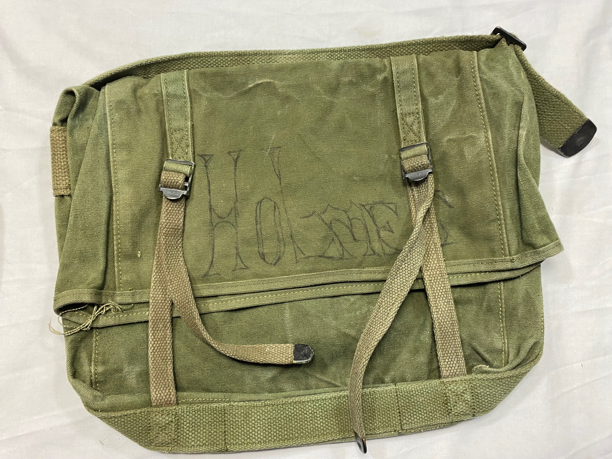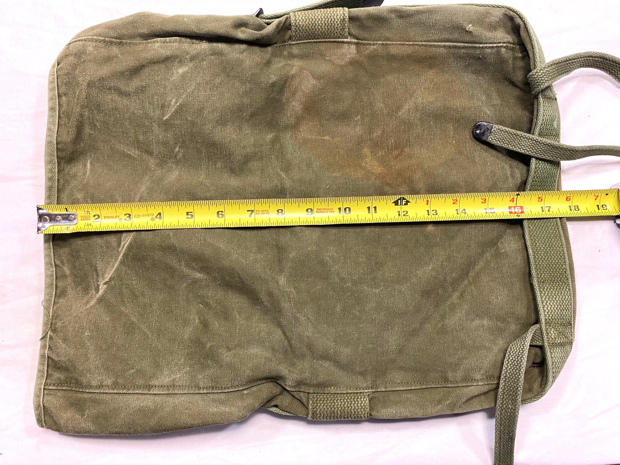 Bottom portion of the USMC M-41 Haversack pack. Marine Corps lower half Haver. Used fair condition. Storage wear, markings, discoloration. Serviceable.