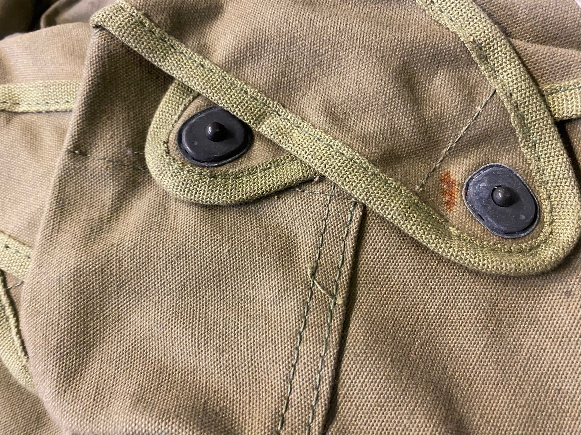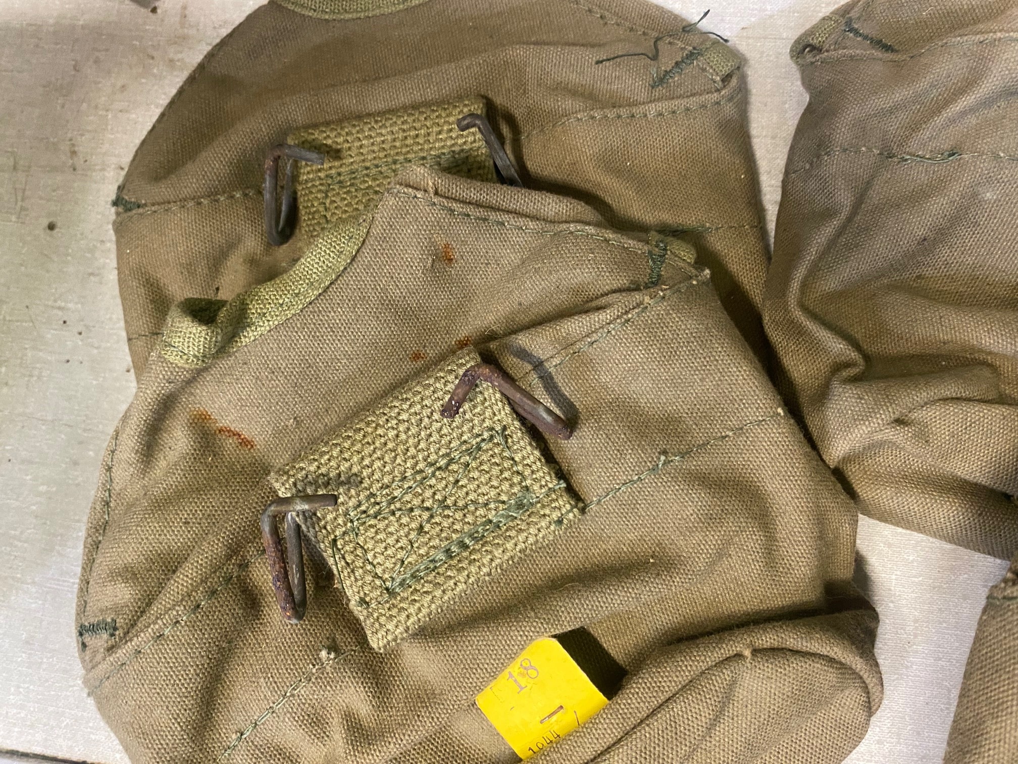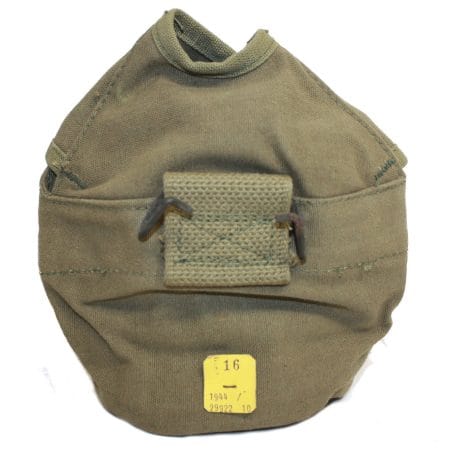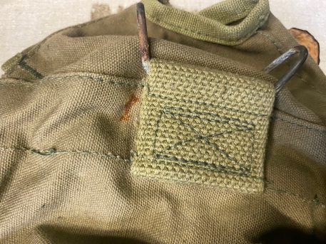 Original issue Marine Corps cross-flap canteen cover. New old stock, mint condition. Wire hooks are made of Steel. There is surface rust on the tip of the hooks. Snaps are brass, the ever so slight oxidation on them is white powder not rust. Also, all have at least 1 small rust mark on the canvas from being stored against the rusty wire hook. Other than that, they are spot free.