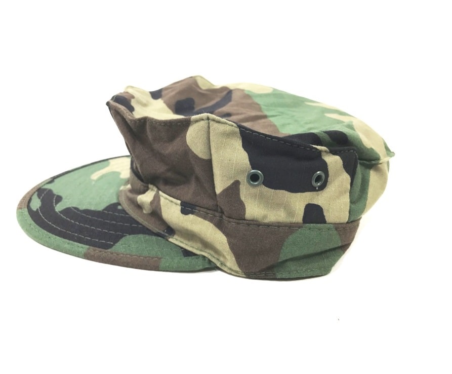 U.S. Navy issue camo cap. Just like the USMC style but without the Eagle, Globe, and Anchor insignia. Double-ply, nylon/ cotton r/s material. New issue top-stitch design. “Navy USN 8 point Cover” Woodland CAMO